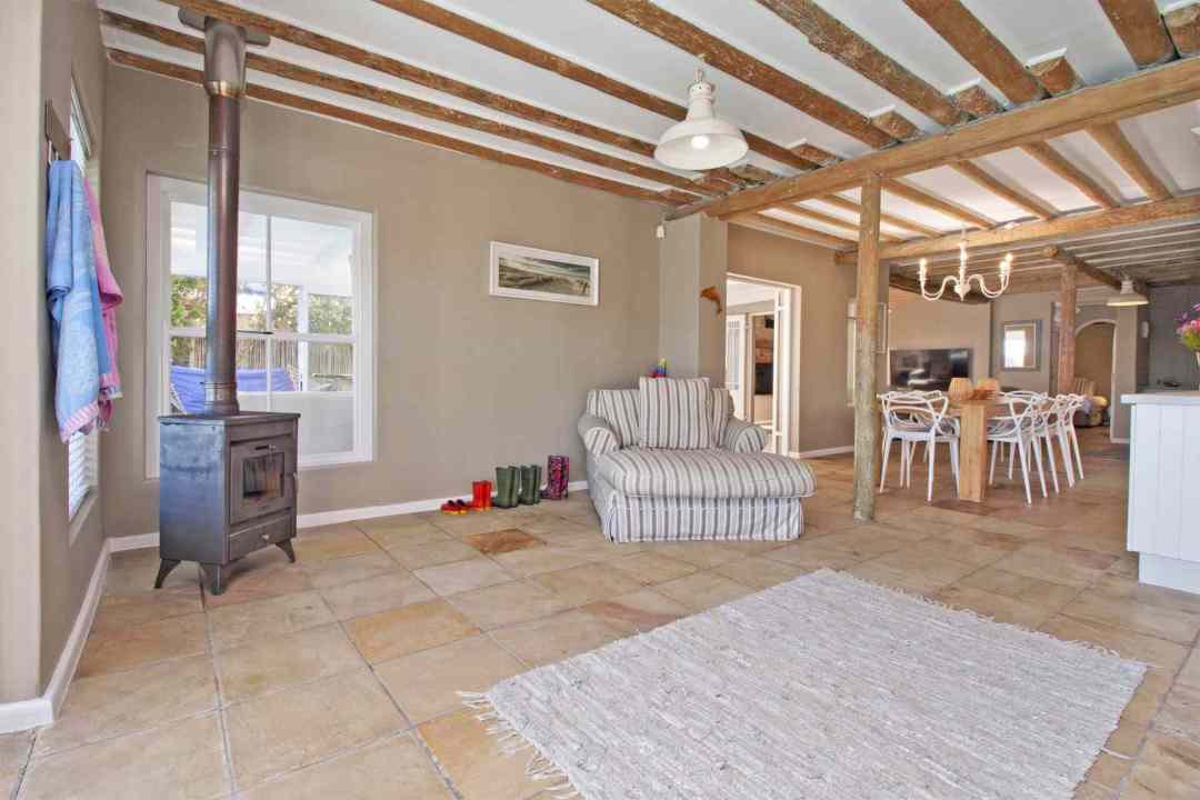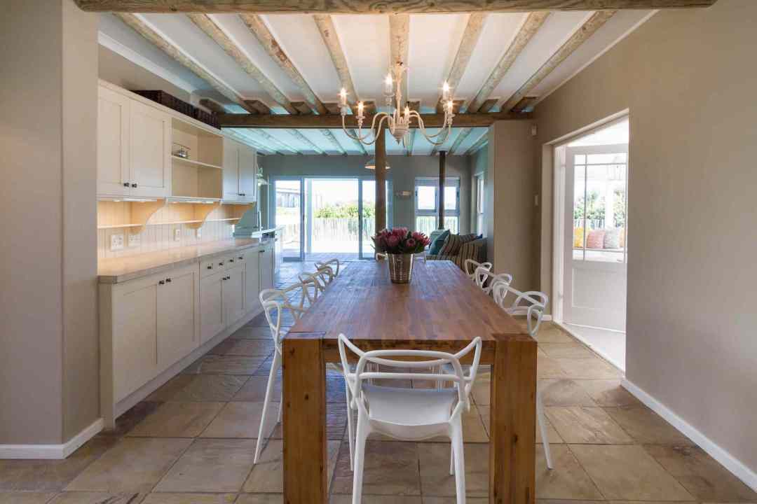 Fin Whale Beach House offers stylish simplicity – a splendid family-friendly beach house, newly renovated and furnished with everything you need for a relaxing holiday. Simply kick off your shoes and step from the deck onto the white sands of Long Beach whilst enjoying spectacular sea and mountain views. Located in the upmarket Klein Slangkop Estate, the house has a relaxed holiday ambiance for all seasons. Snuggle up next to the fireplace in winter or explore the surrounding area in summer. An ideal spot for long walks on the beach.