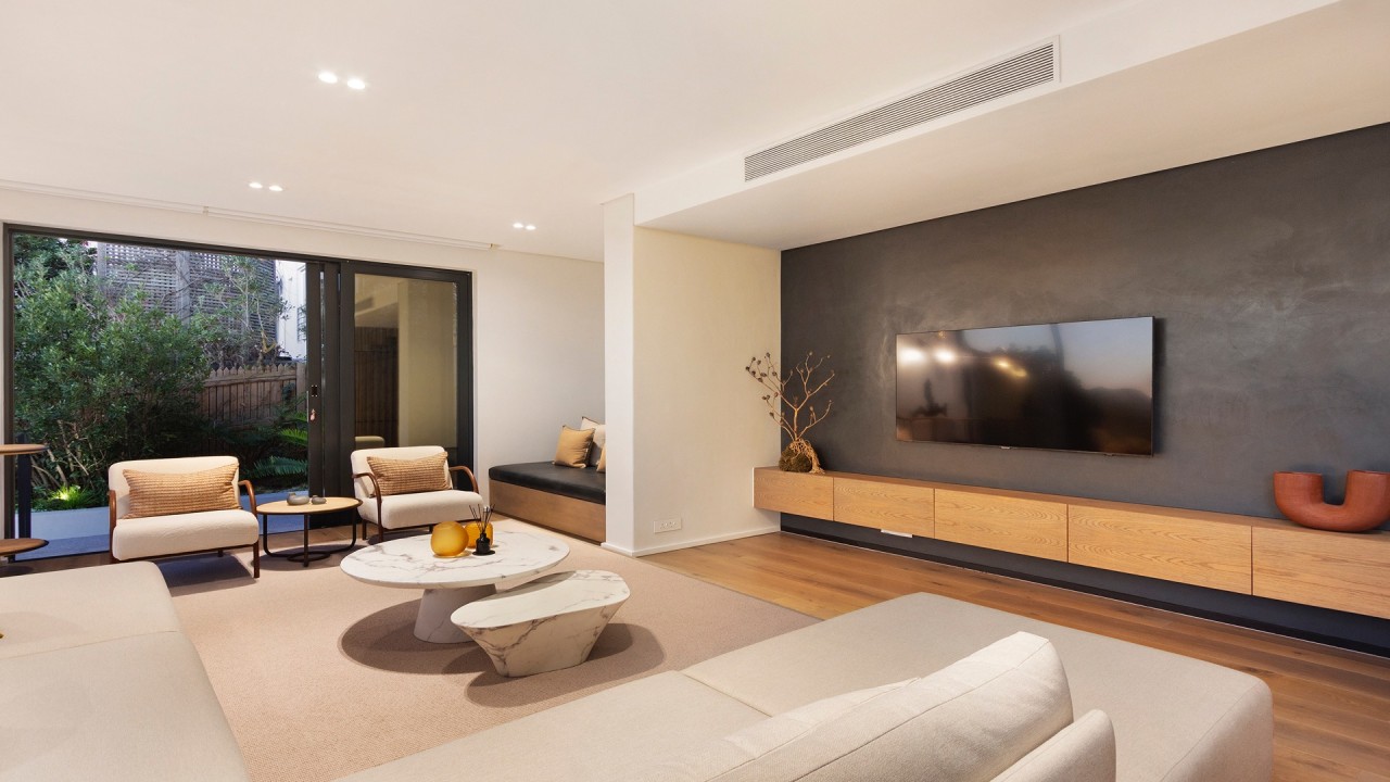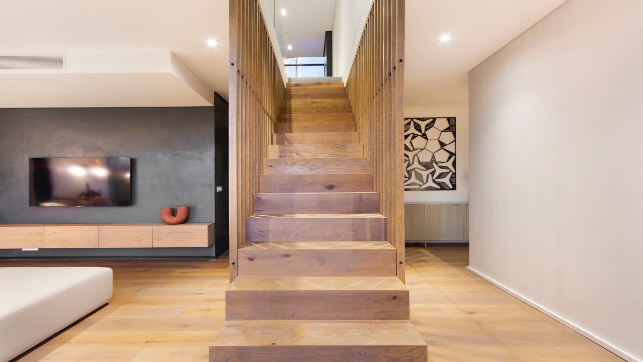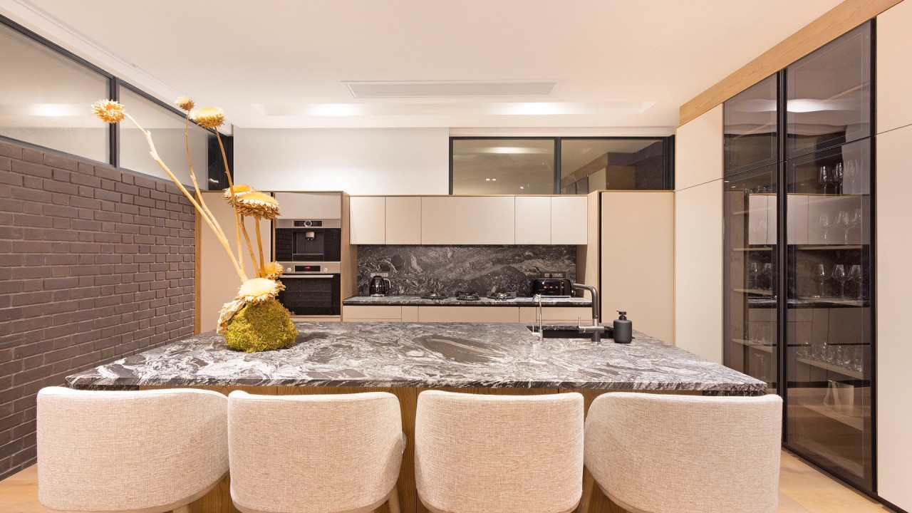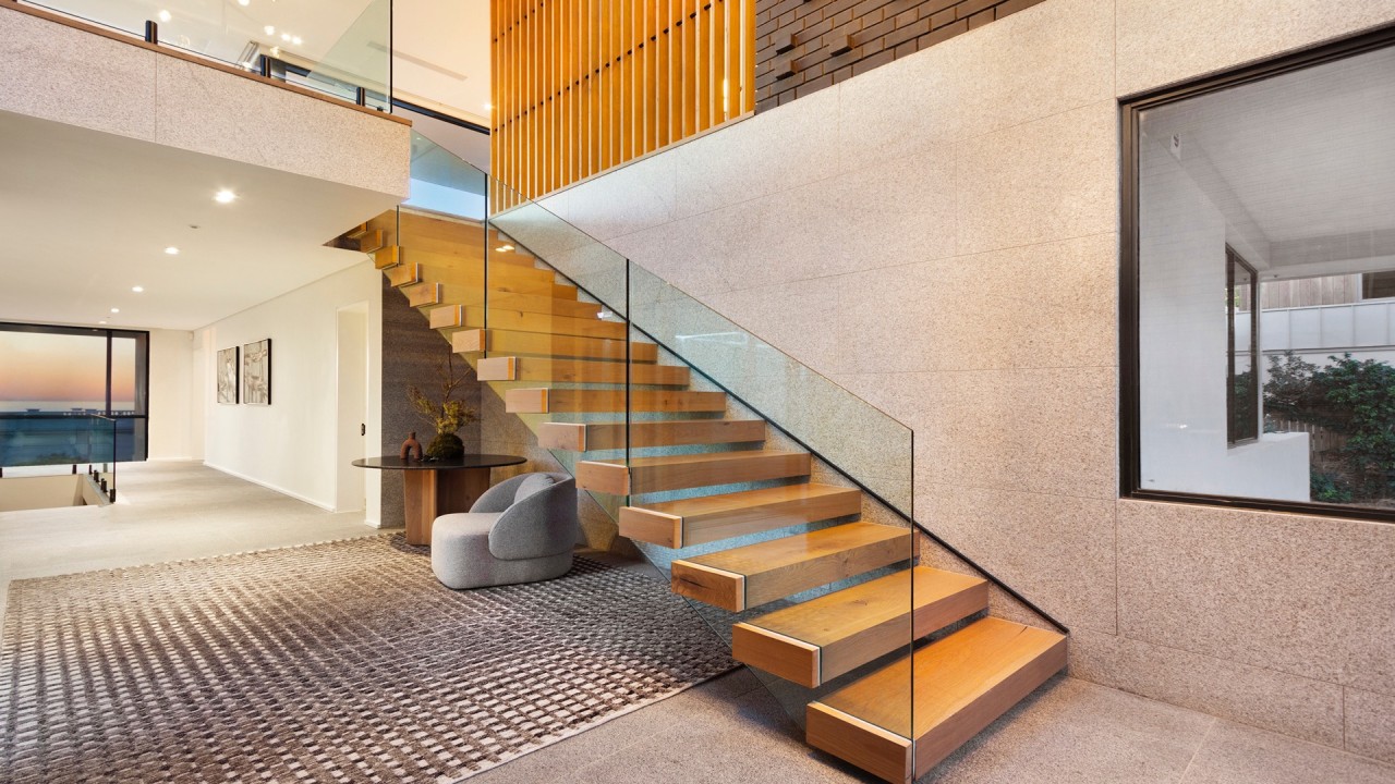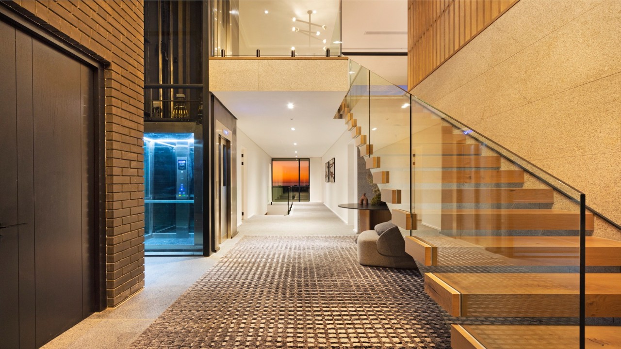 Designed for both relaxation and entertaining, the home spans three levels connected by both stairs and a lift. The main entertainment level features open-plan living spaces that flow seamlessly from the lounge to the dining area and kitchen, all overlooking the Atlantic Ocean through expansive windows. The large outdoor terrace invites guests to dine alfresco or relax in the outdoor lounge while soaking in the spectacular sea views.