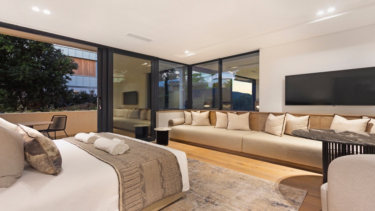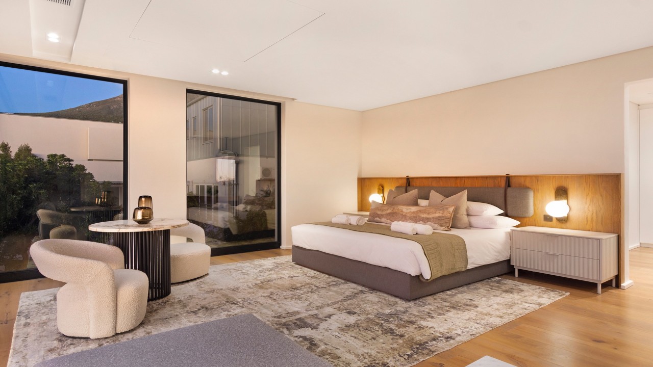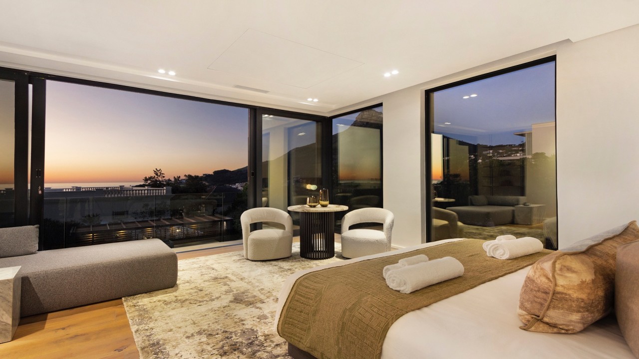 Each bedroom is thoughtfully designed with comfort in mind, featuring electronic blackout blinds, luxurious beds, and elegant en-suite bathrooms. Several rooms enjoy beautiful views of the ocean or Lion’s Head, enhancing the tranquil atmosphere of the home.