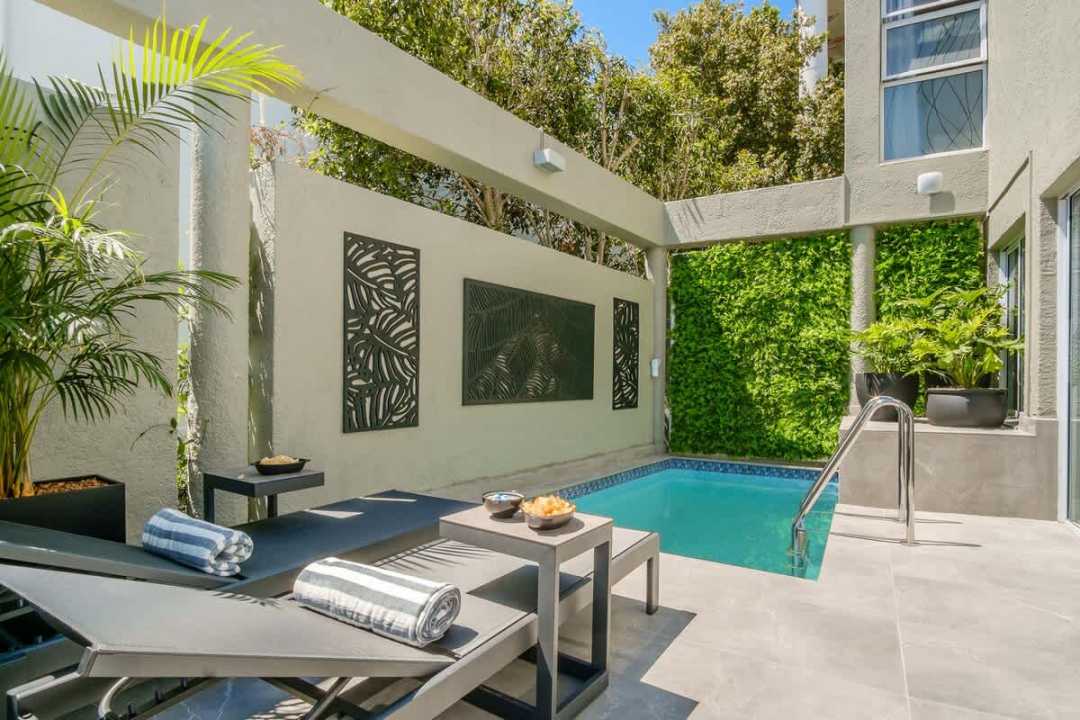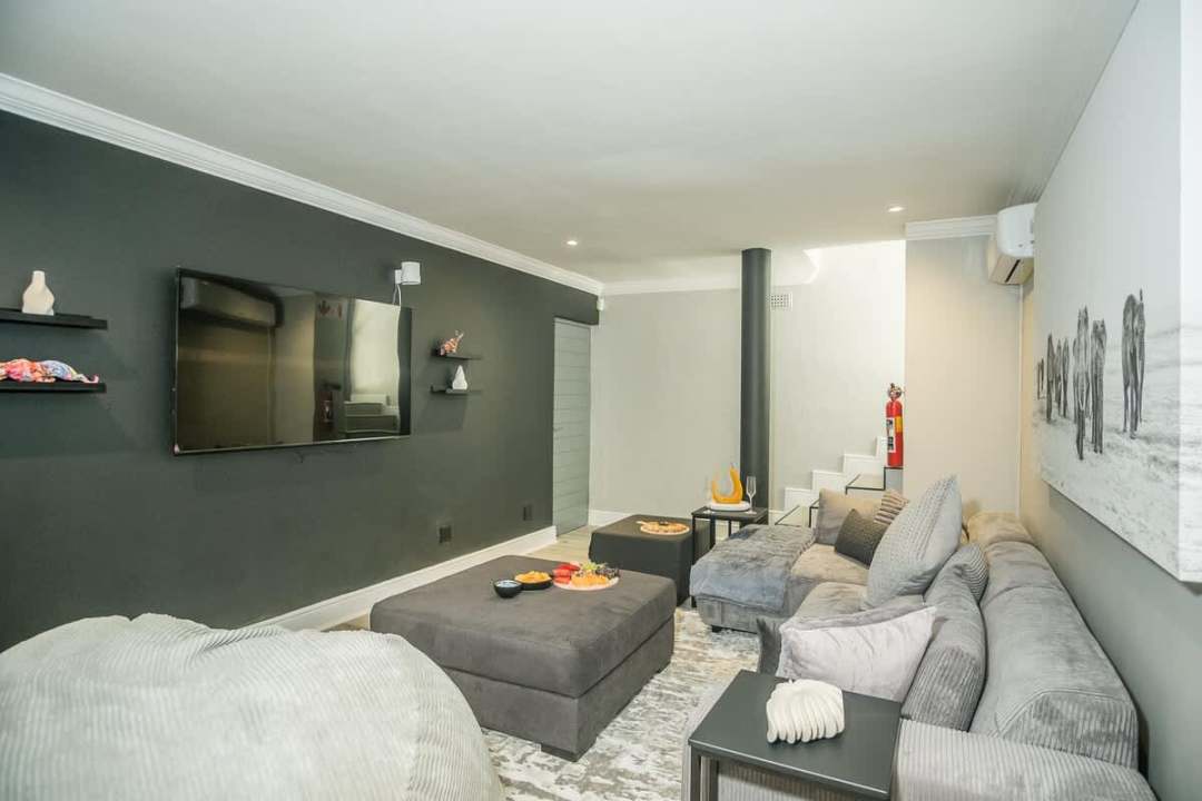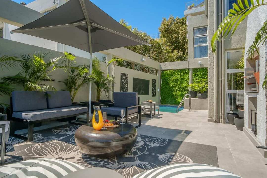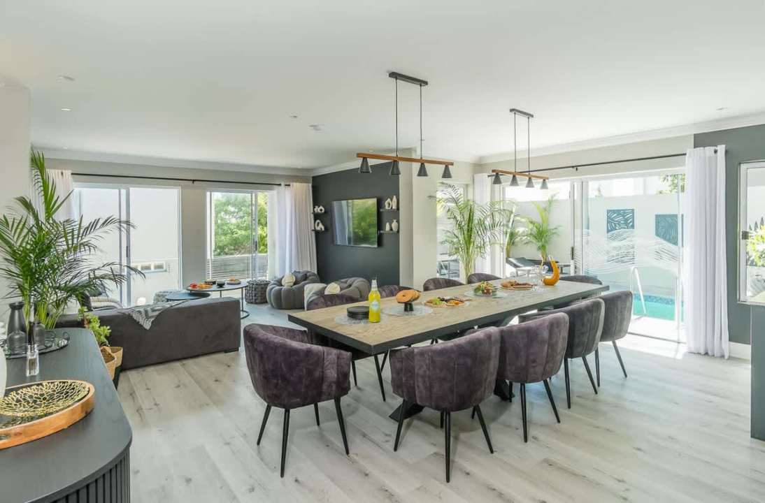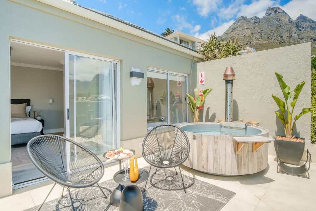 This meticulously updated villa boasts a private splash pool, a wood-fired hot tub, and an expansive outdoor terrace. Relax on plush sun loungers or dine alfresco with a built-in BBQ and elegant seating, all while taking in the views of Cape Town’s iconic landscape. Every detail has been thoughtfully reimagined to offer modern sophistication and effortless comfort.