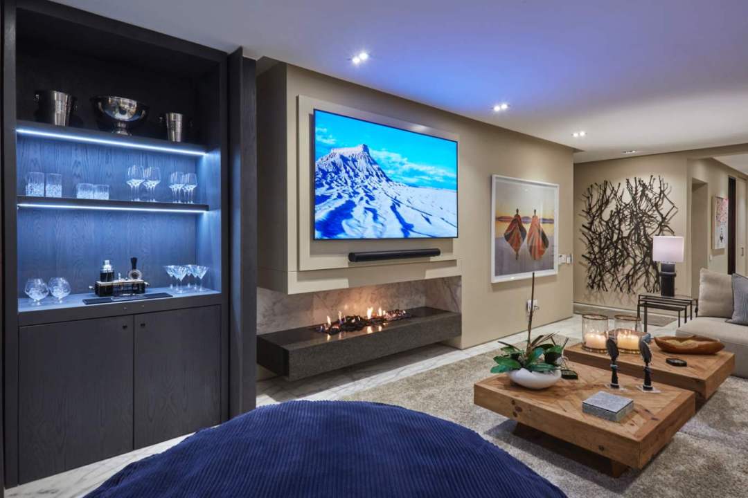 From this level, guests can also access the villa’s grand entrance – a striking foyer featuring a baby grand piano, curated artwork, and elegant lighting. A fully equipped gym is also located on this floor, along with a private elevator that connects all four levels of the home, ensuring easy access throughout the villa.