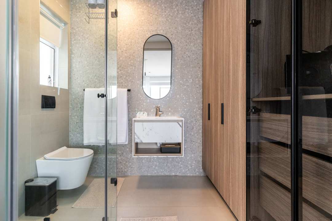 Relax and rejuvenate in the spacious main bedroom, featuring a plush king-size bed, air conditioning, and captivating glimpses of the ocean. The second bedroom offers a peaceful ambiance, while the third bedroom provides flexibility with twin beds and a practical workspace.