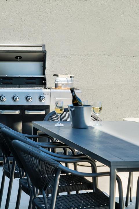 The fully equipped contemporary kitchen features high-end appliances, including an electric hob, Nespresso machine, dishwasher, washer, and dryer — ideal for extended stays or arranging a private chef experience through our concierge team.