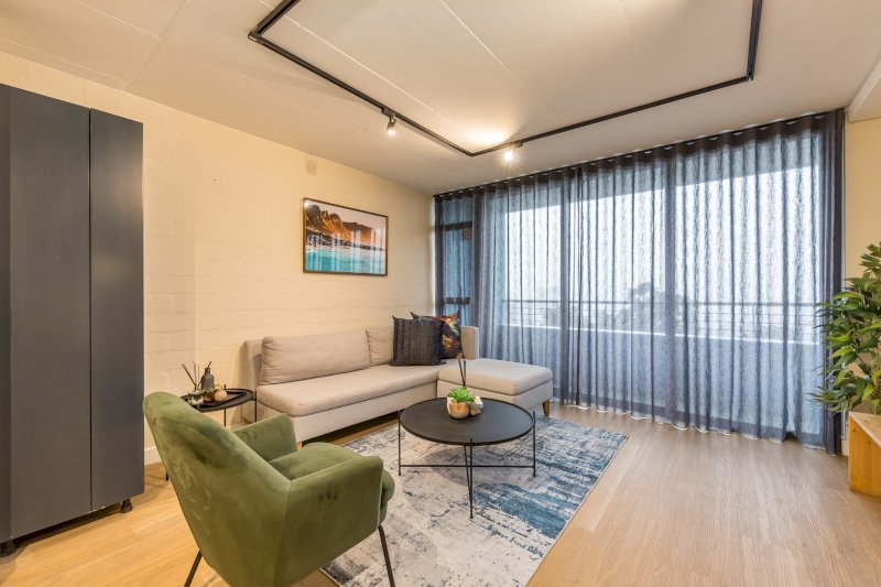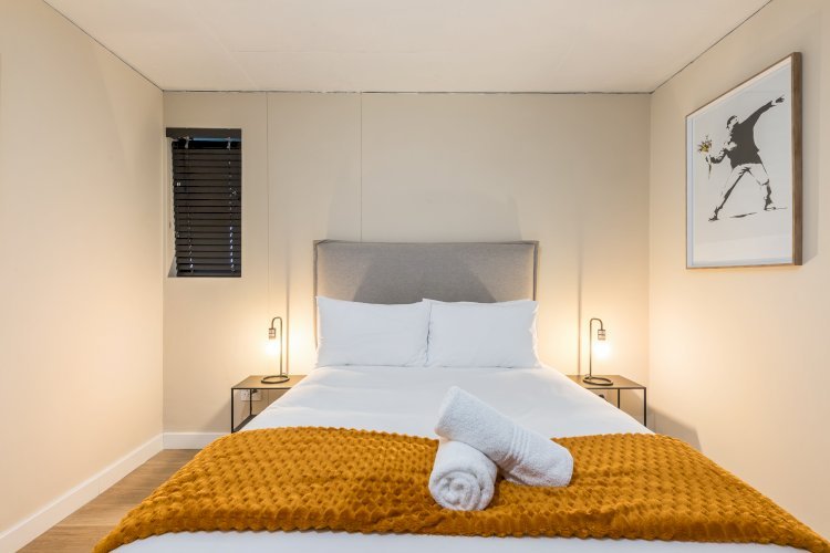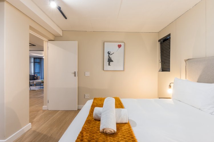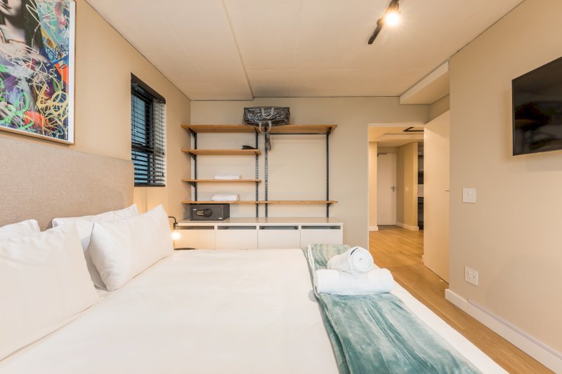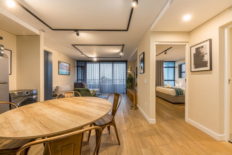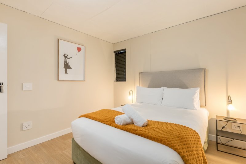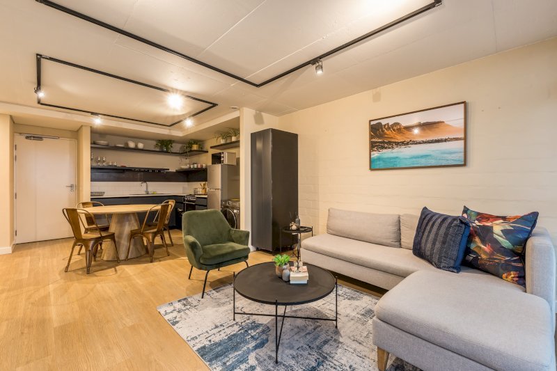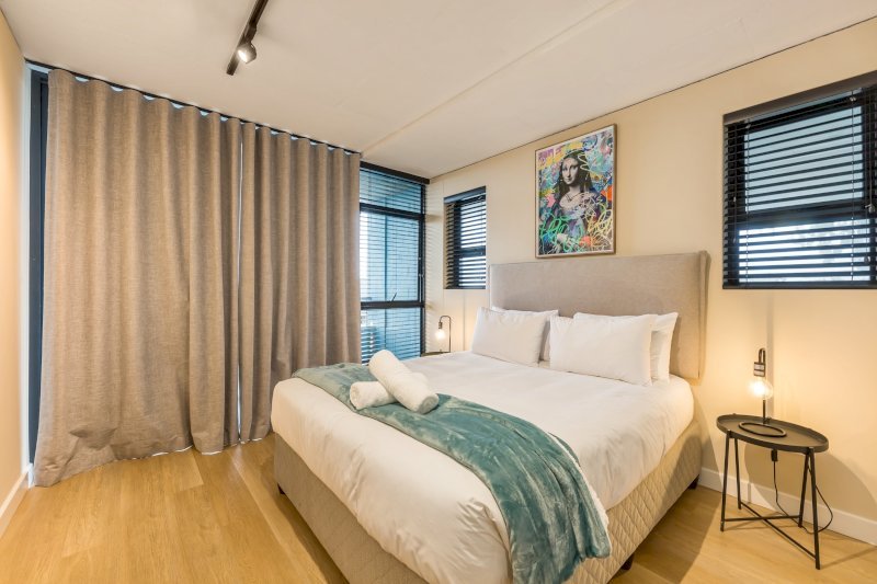 This 2 bedroom apartment is characterized by its airy and bright ambiance and features sliding doors that open onto a spacious balcony offering breathtaking views of Table Mountain, the ocean, and the city. The apartment is designed with contemporary aesthetics and modern finishes that ensure a comfortable living experience. It is equipped with convenient amenities like access to Netflix channels and high-speed Fibre internet. A fully equipped kitchen with modern appliances will have you cooking like Jamie Oliver! Take advantage of the communal laundry room or sunbathe on a large rooftop terrace before taking a refreshing swim in the communal pool that offers panoramic views.