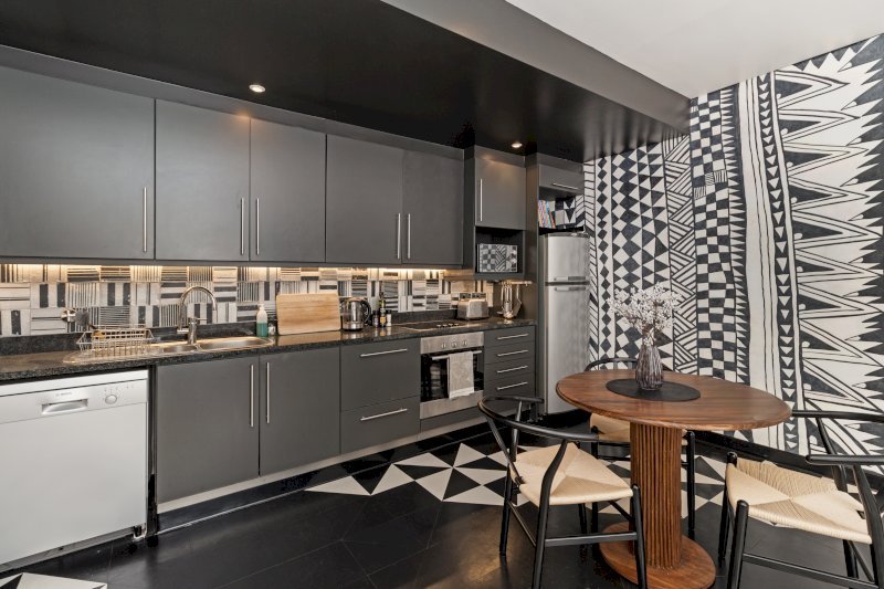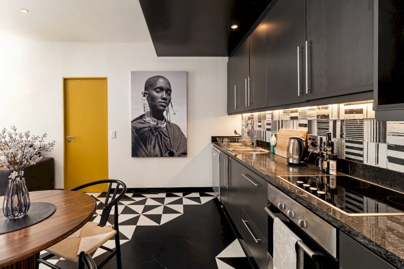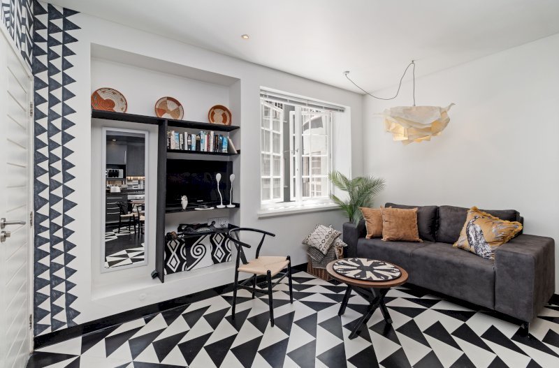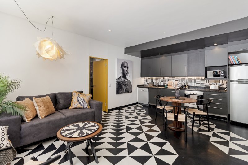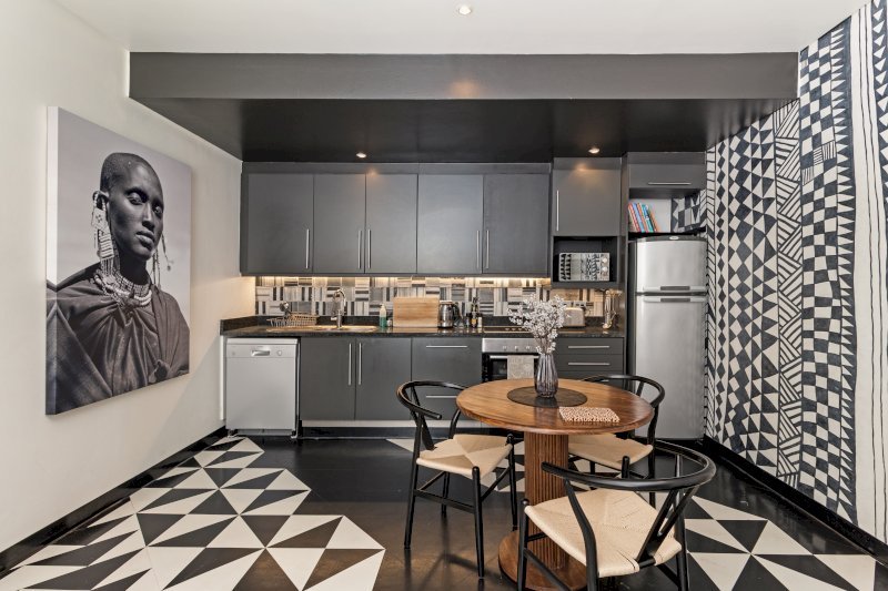 Set within the energetic heart of Cape Town’s creative quarter, this apartment offers a layered, design-forward aesthetic that reflects contemporary African expression. Textured fabrics, statement décor, and carefully curated artwork create warmth and individuality throughout the space.
