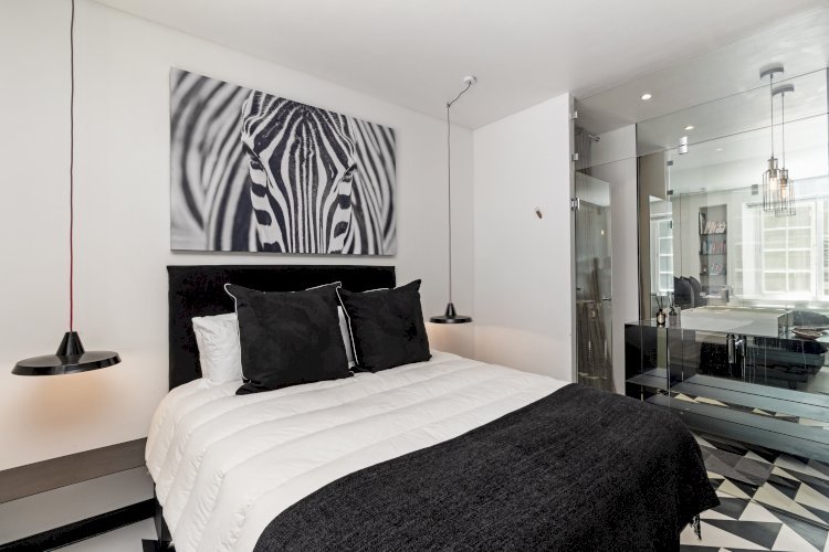 The bedroom maintains the same artistic sensibility, with bold accents and a glass-partitioned en-suite that enhances the sense of openness and light. Surrounded by galleries, cafés, and independent boutiques, the apartment offers immediate immersion into the city’s cultural landscape, while the beaches and mountain trails remain only a short drive away.