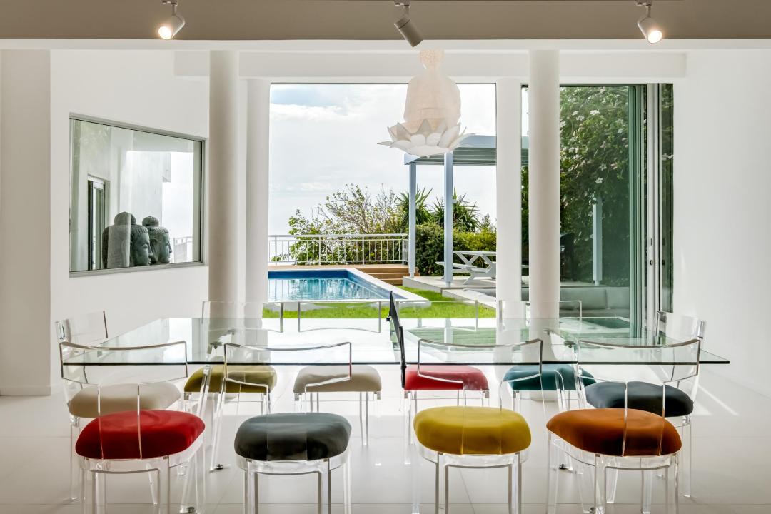Spread across four levels, the villa features 10 serene bedrooms, eight with private exterior access for maximum privacy and tranquillity. Most suites open onto sweeping sea views, while others enjoy a calming mountain outlook. Each bedroom is designed to be a personal retreat, offering comfort and quiet reflection.
