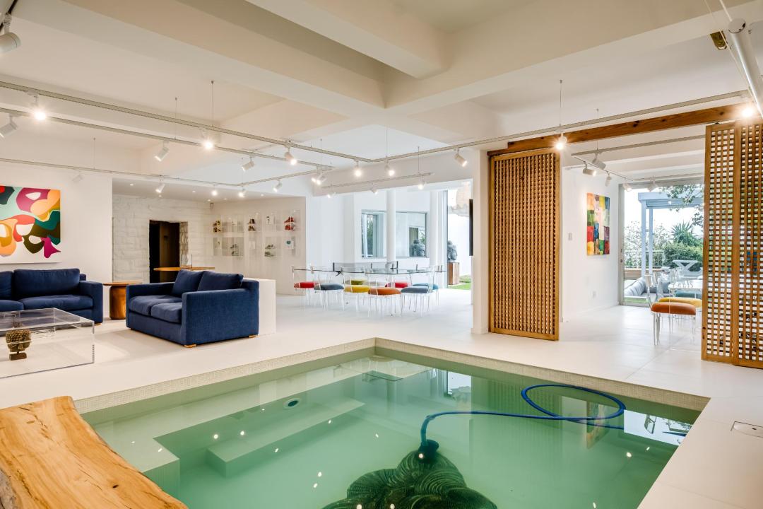 From sea-facing terraces to the lush garden, every outdoor space is created for gathering and reflection. Guests can unwind by the fire pit, cool off in the outdoor pool, or opt for a swim in the indoor pool. A private gym ensures active routines remain uninterrupted.