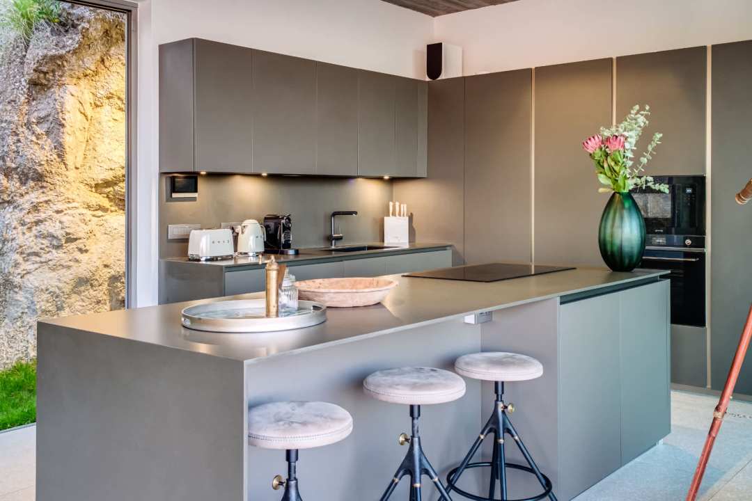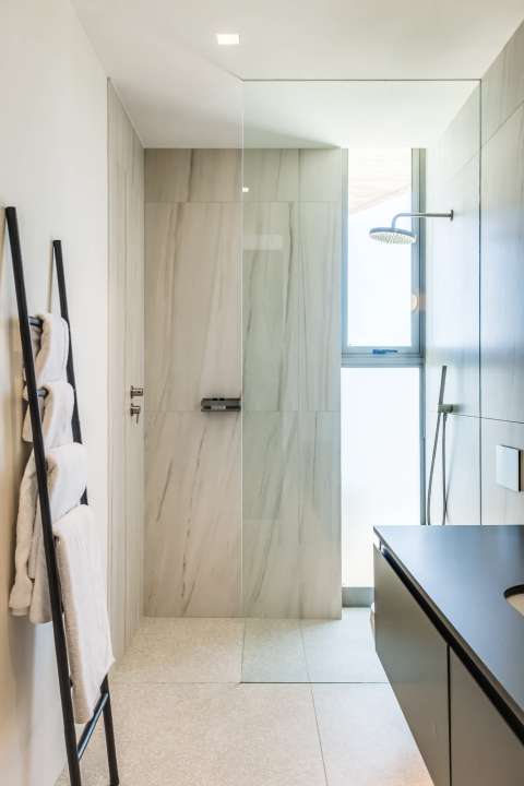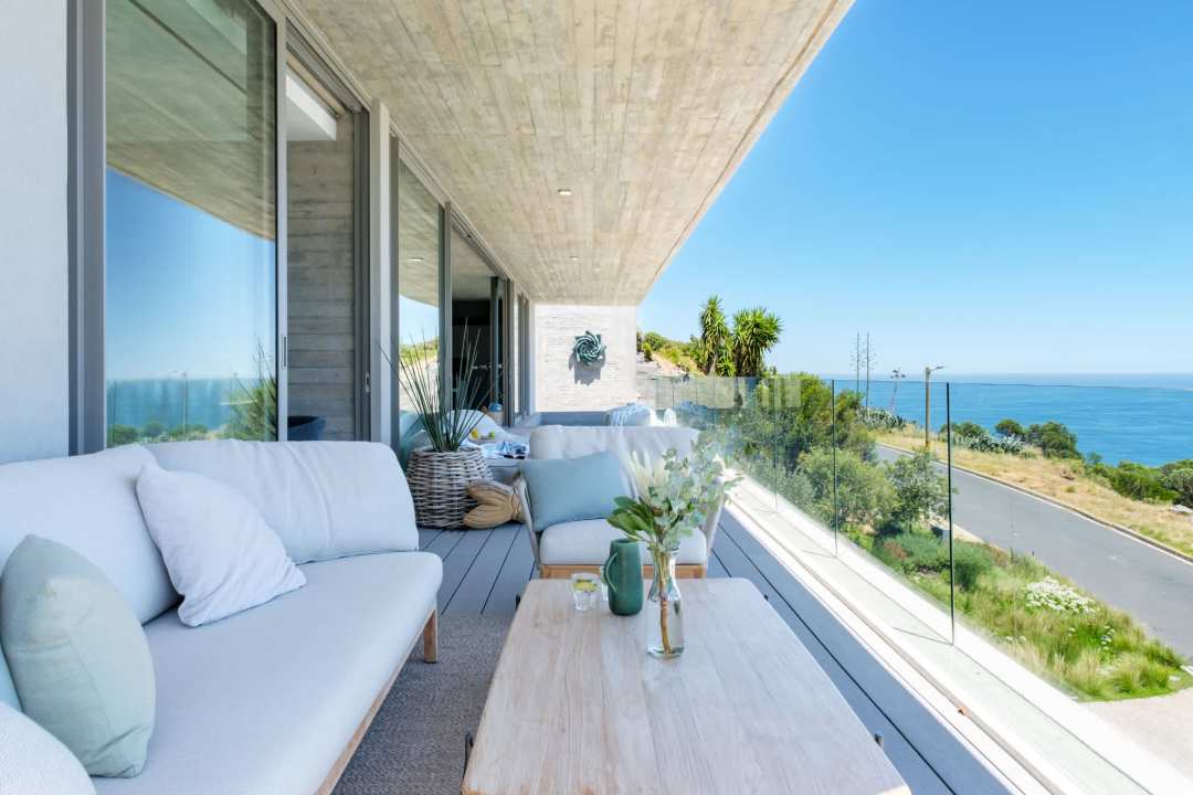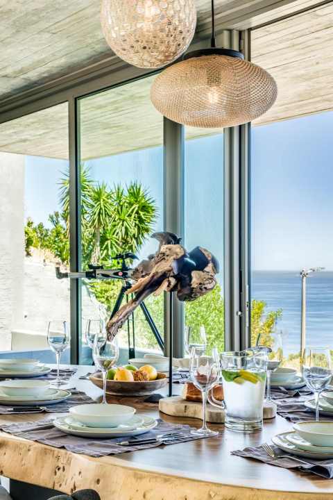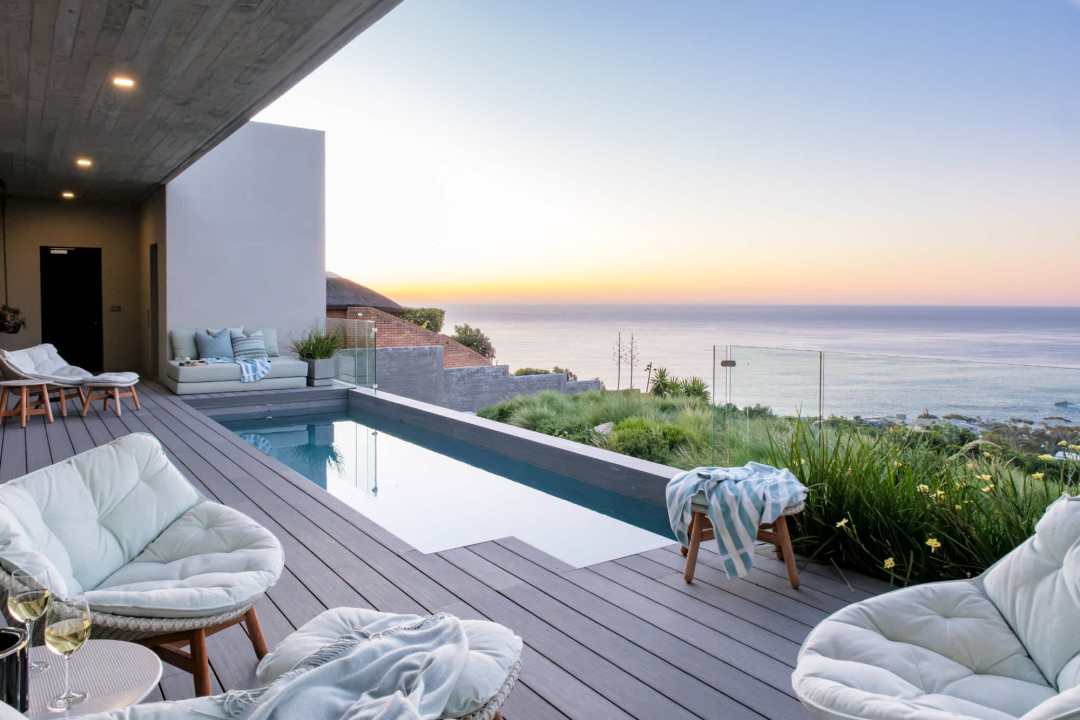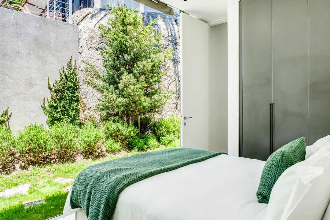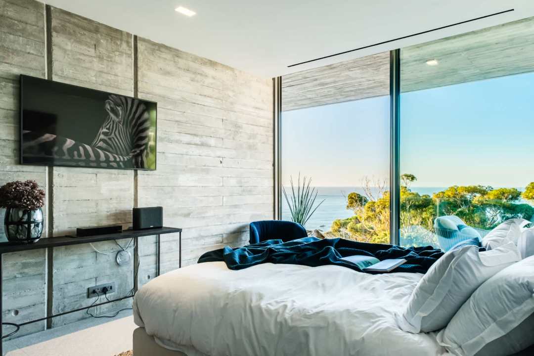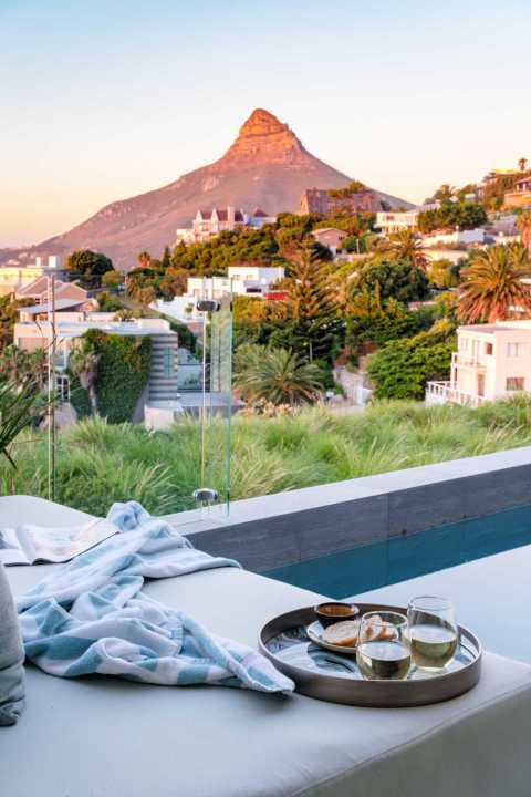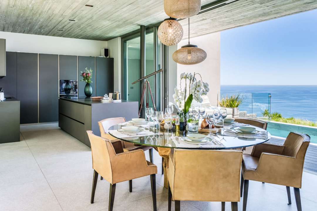 This contemporary and luxurious villa is nestled in the exclusive suburb of Camps Bay and offers sweeping views of the Atlantic Ocean and Lion’s Head. The property consists of two separate three-bedroom apartments, which can be booked individually or together to create a spacious six-bedroom home. A lift connects both levels; when rented separately, each apartment remains completely private. Both offer three bedrooms, three bathrooms, an open-plan living and dining area with fireplace, a modern kitchen, balcony, and a private pool. There is also a gym available for guests use. Please note: the downstairs dining area seats a maximum of 10 guests. It is therefore ideal for groups happy to share a beautiful space or dine across two separate areas. Each bedroom is air-conditioned, en-suite, and tastefully furnished with luxurious finishes. All rooms feature in-built speakers, so you can enjoy your own music throughout the villa. With spectacular views and elegant interiors, this is the perfect setting for a memorable holiday.