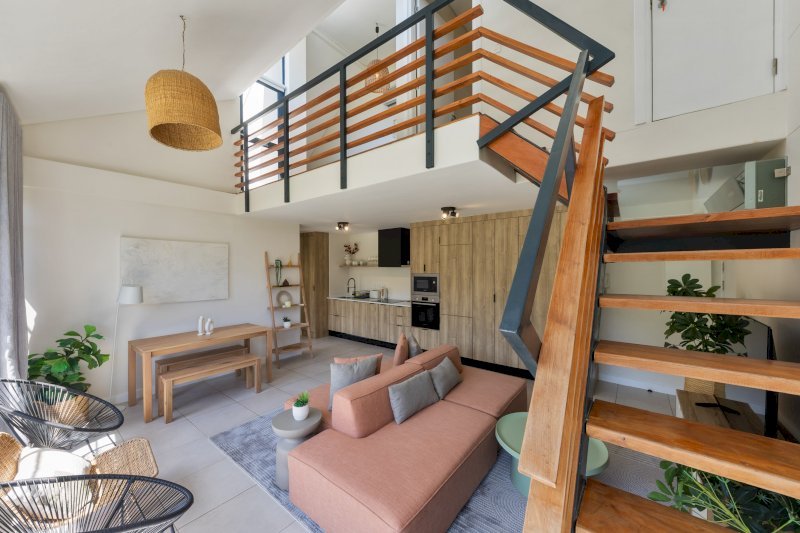 Located on the top floor of a modern and secure block, this 2 bedroom duplex apartment has a bright and airy feel thanks to large windows that overlook the forest canopy. The 1st floor consists of an open-plan fully equipped kitchen and a dining and lounge area.