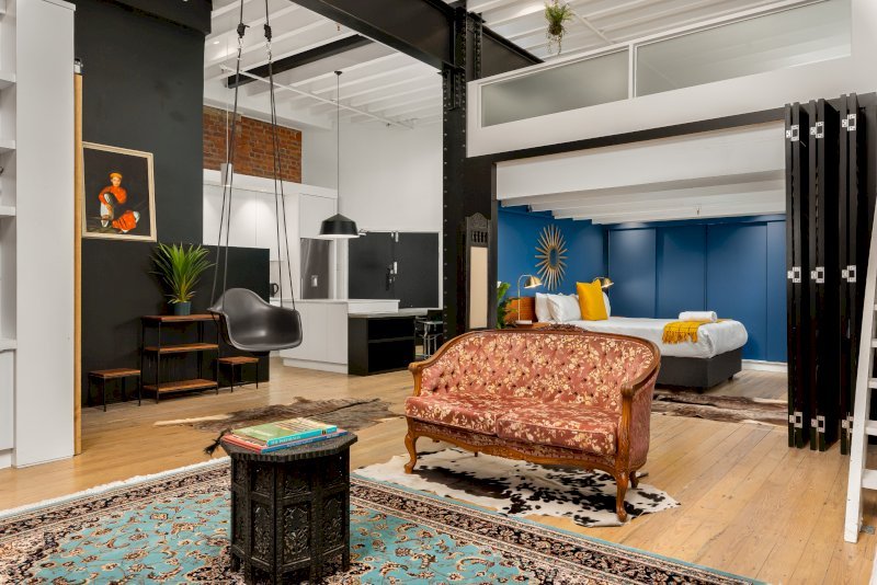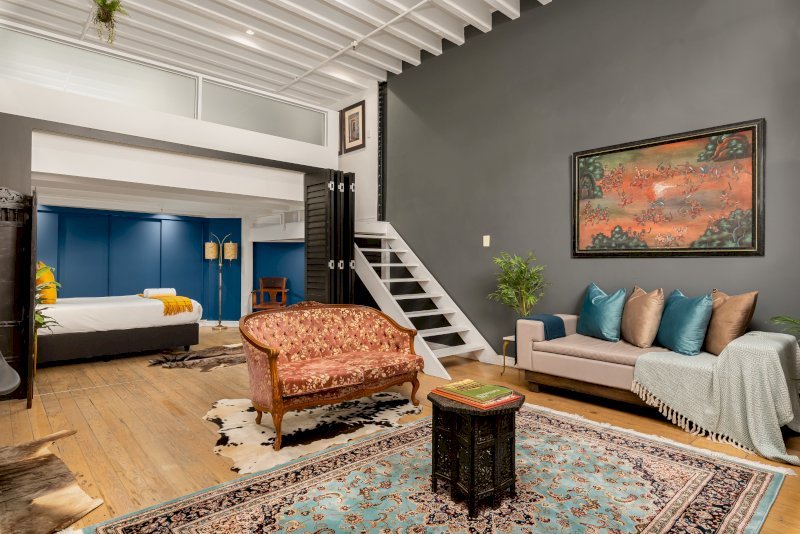 A spacious New York-style loft apartment set in Cape Town’s dynamic East City Precinct. Designed for travellers seeking character and comfort, this two-bedroom residence blends industrial design with modern convenience, placing you within walking distance of the city’s leading cafés, galleries, and cultural landmarks.
