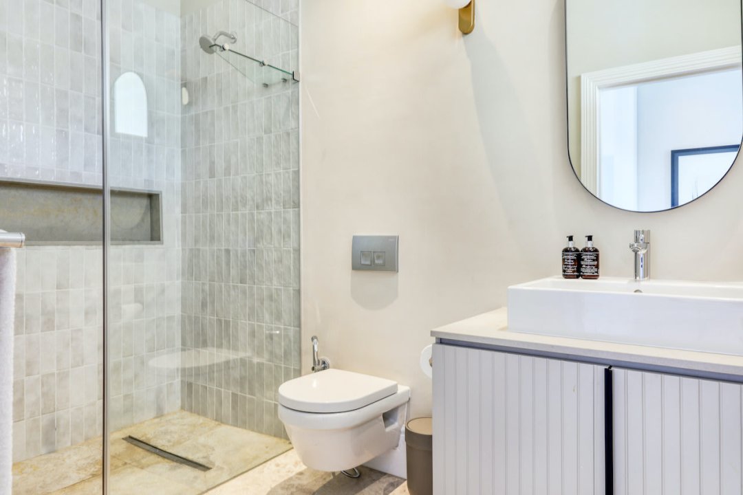 As you enter the home, you’ll be greeted by an expansive open-plan living room that seamlessly flows and connects with a spacious dining area and fully integrated kitchen and scullery. All four bedrooms are ensuite, three of which open out onto the terrace. Enjoy the barbeque, bar, and outdoor seating and dining here with your loved ones. Downstairs, a second TV room and well-equipped gym is located. From here, you can soak up the sun in the well-manicured garden, relax and take a dip in the pool.
