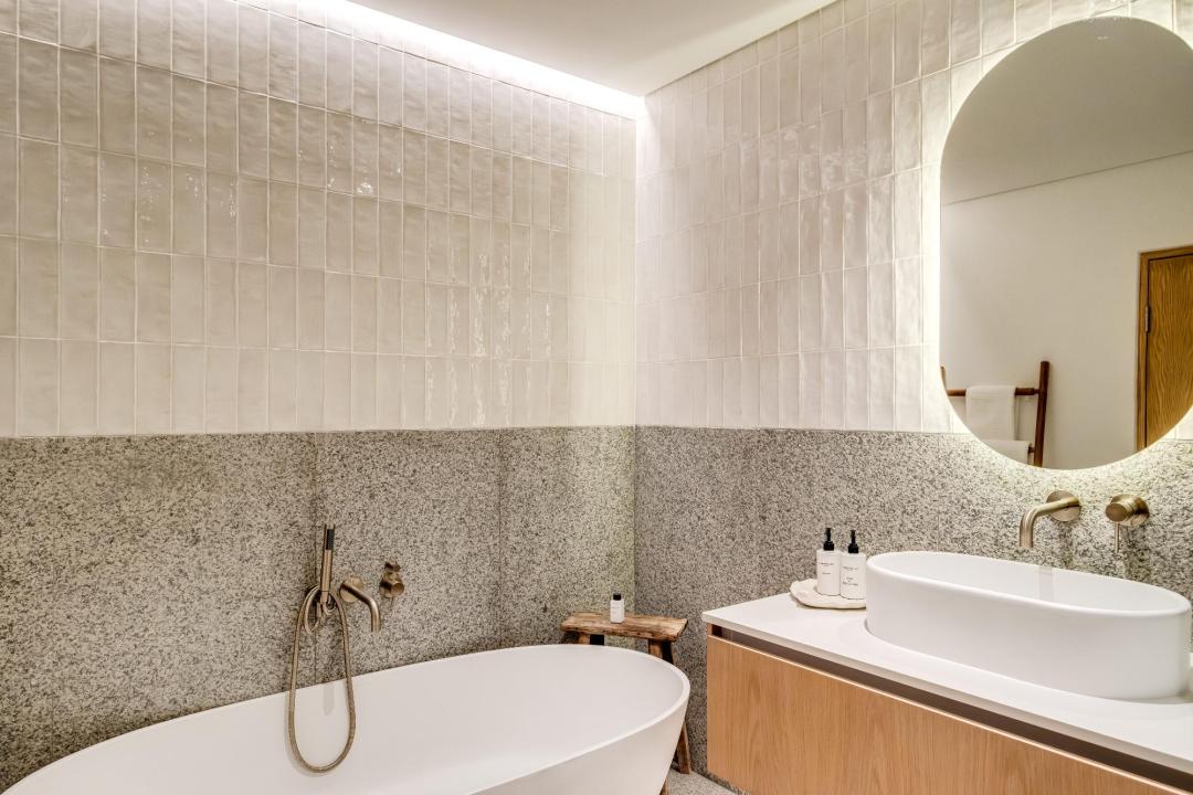 The private balcony is furnished with seating and a sun lounger, creating the perfect setting for morning coffee, afternoon relaxation, and unforgettable Atlantic sunsets.