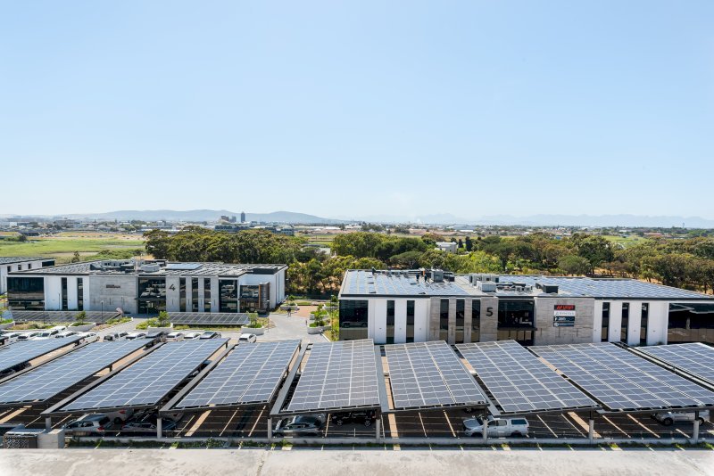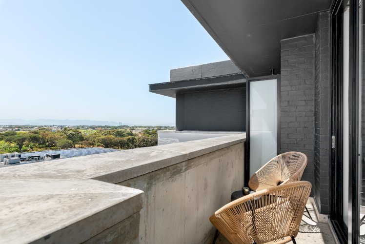 An open-plan layout connects the dining area for two with the comfortable lounge, complete with a couch and smart TV for evenings in. The living area leads onto a private balcony where you can take in beautiful views of the Helderberg Mountain range; the perfect spot to enjoy your morning coffee or a quiet sunset.