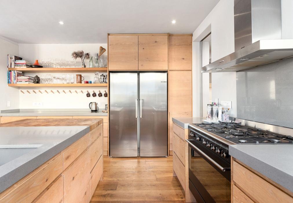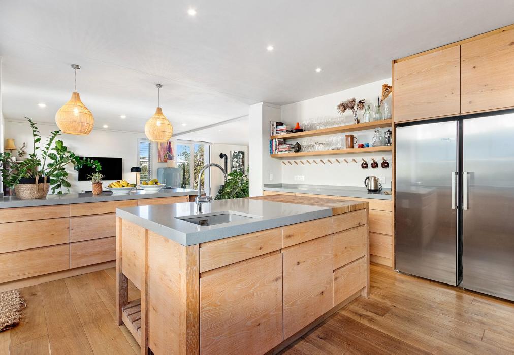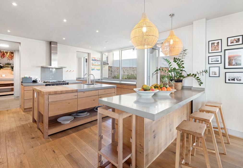 Step inside to find vibrant interiors that blend contemporary design with warm textures and inviting colours. The open-plan kitchen is both rustic and refined, featuring rich wood finishes, high-end appliances, a center island, and a separate scullery. Whether you’re cooking together or enjoying a private chef experience, it’s a kitchen made for gathering. The adjoining lounge and dining areas flow seamlessly from one to another — with a fireplace, Smart TV, and elegant dining space setting the scene for relaxed evenings or intimate dinners.