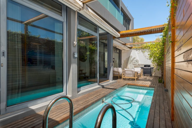 A refined two-bedroom villa set in the heart of Green Point, offering elevated views across the Atlantic Ocean towards Robben Island. Designed for discerning travellers, this double-storey residence blends modern interiors with seamless indoor–outdoor living, making it ideal for couples, business travellers, or extended stays seeking privacy and proximity to Cape Town’s coastline and cultural landmarks.
