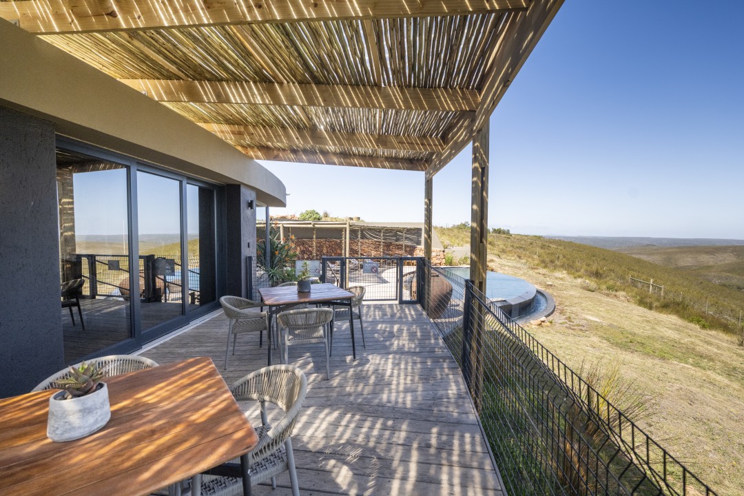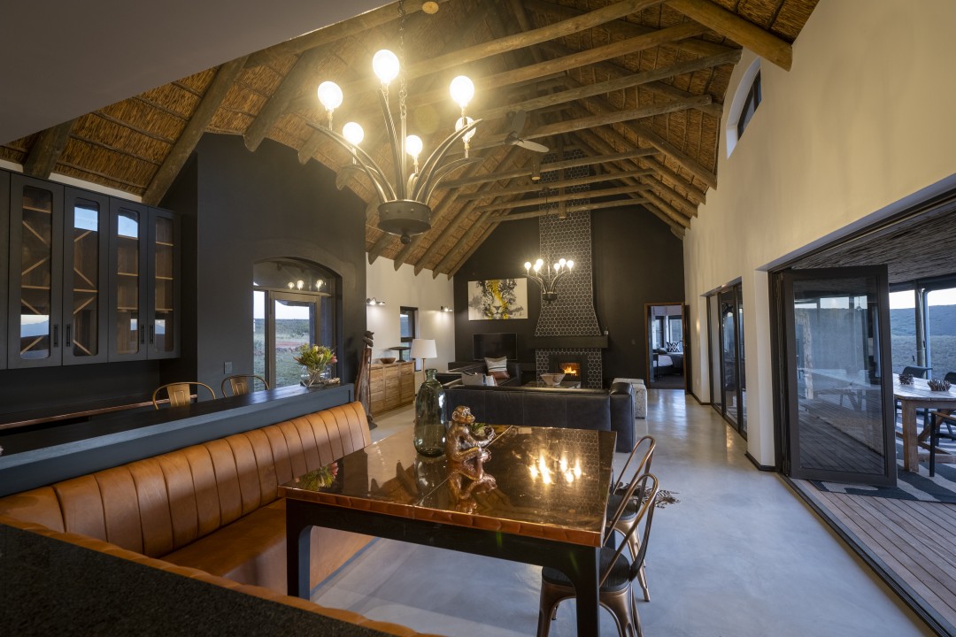 Kwena Lodge offers guests 14 stand-alone bedrooms designed with a modern and luxurious twist on the traditional Khoi-San “hut”. Each romantic open plan suite is nestled into its spectacular surrounds with 180-degree views, sky lights for star gazing, wood burning fireplaces and deep baths to keep you warm upon return from an evening game drive. Lodge facilities include a chic bar and lounge area, infinity pool, multiple indoor and outdoor dining venues, bush spa, reception and curio shop.