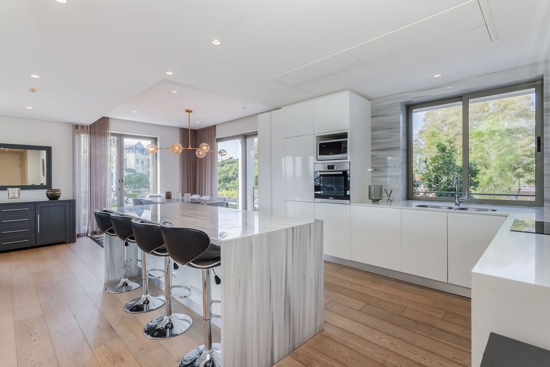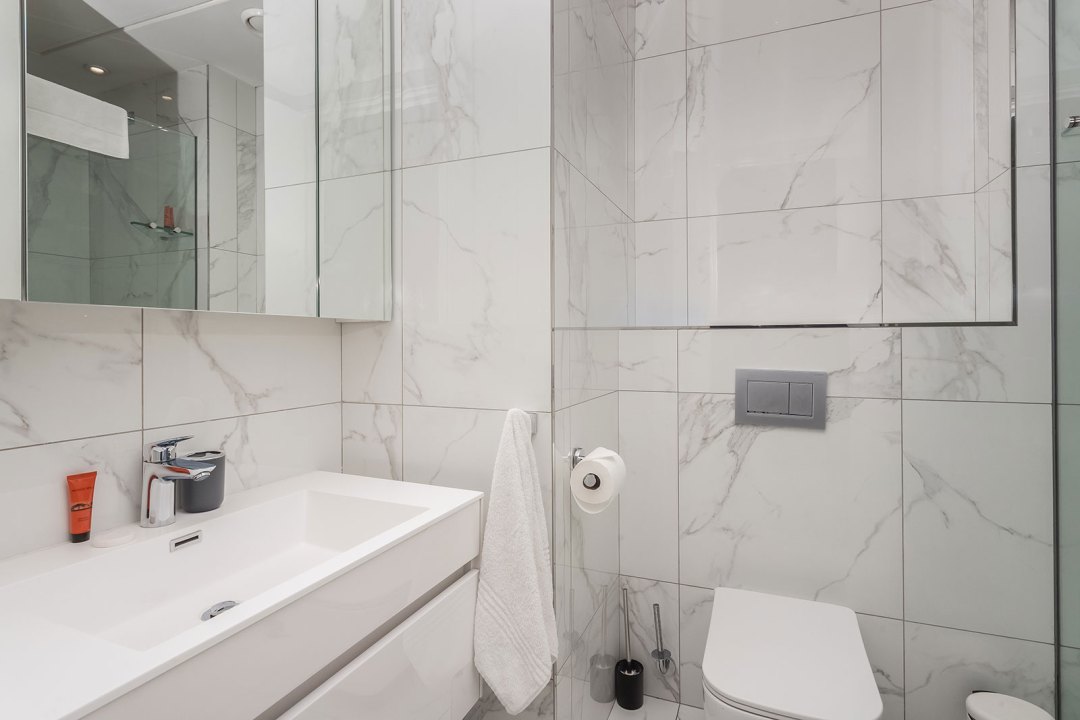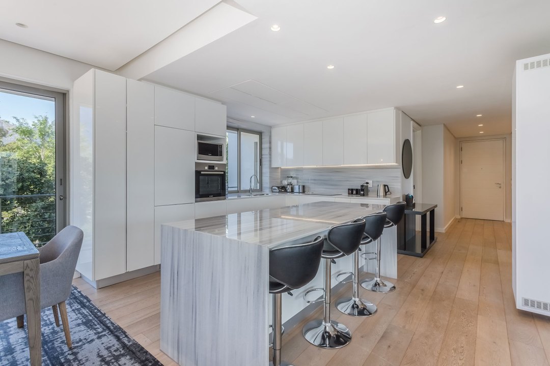 Elegance meets modernity in a newly renovated two-bedroom apartment high up in a building overlooking the marina and partly the yacht basin. With beautiful frameless glass terrace walls for wind protection.