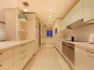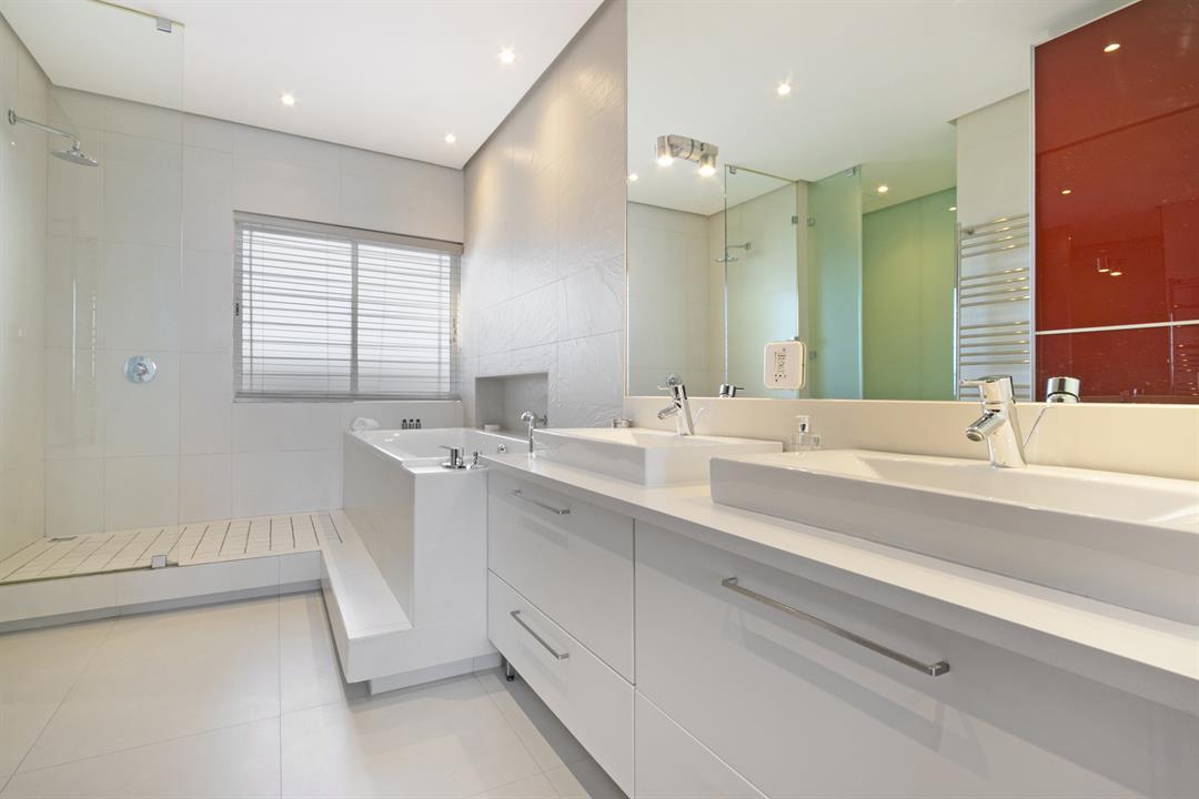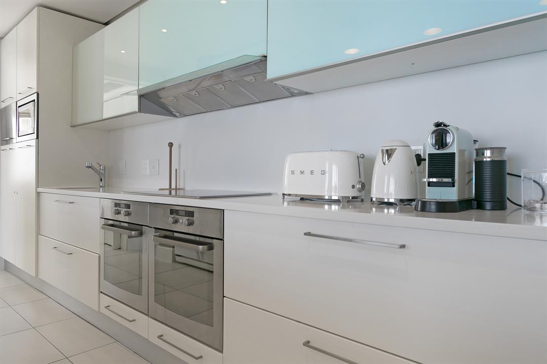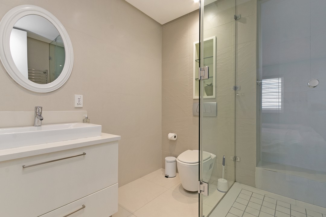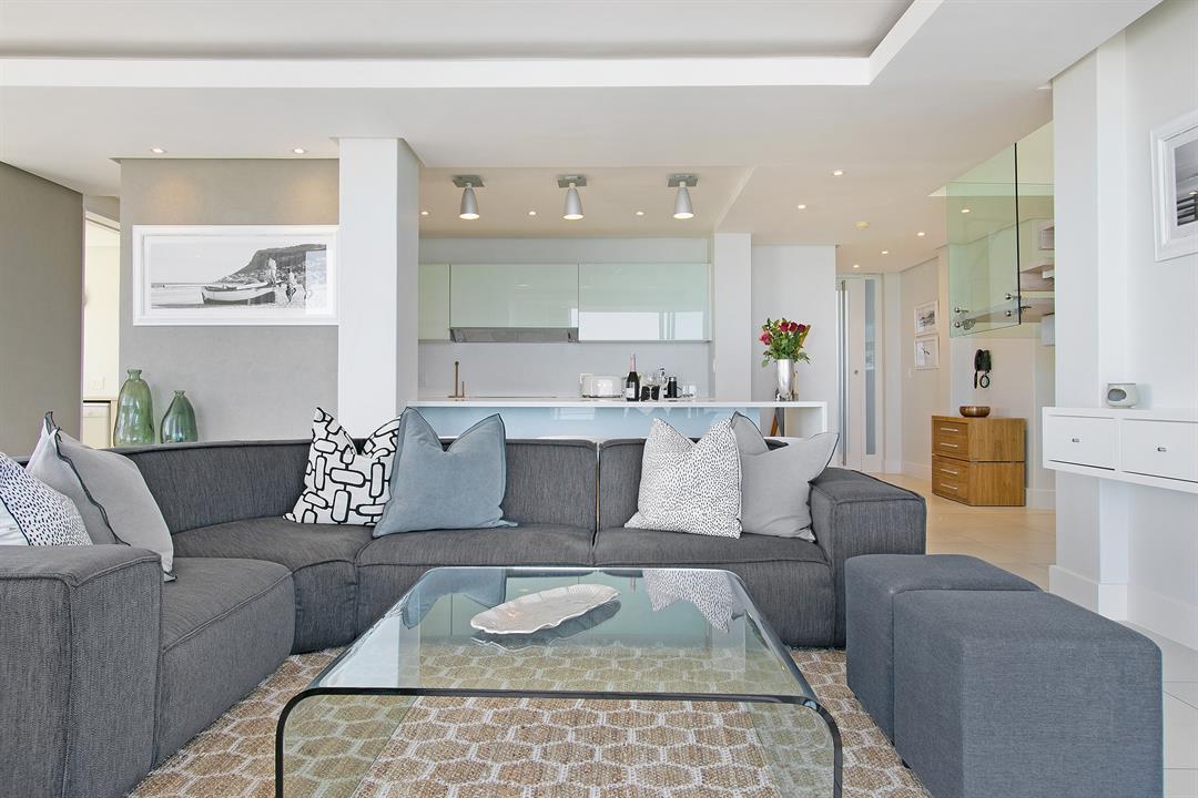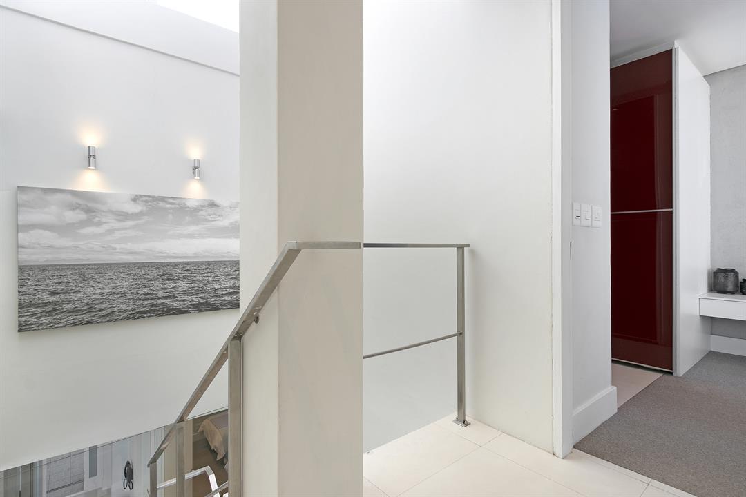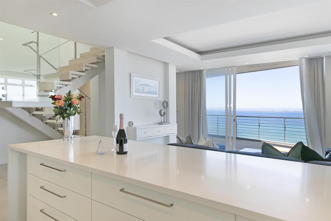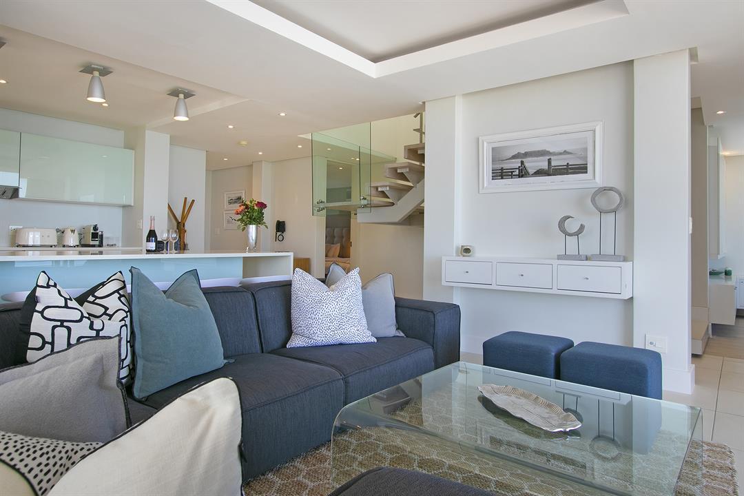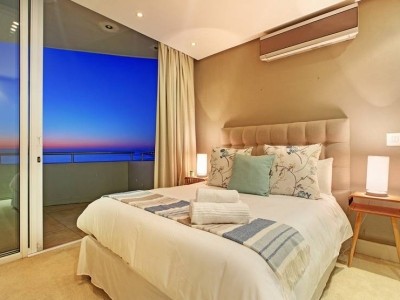 Downstairs, the modern kitchen opens up into the living room, dining area and the more intimate TV room, with parallel views of the ocean and surrounding city lights. The balcony allows guests to enjoy sundowners or a meal outside as the sunset steals the show. Three stylish and beautifully decorated bedrooms can accommodate up to 6 holiday guests. There is an upstairs balcony too, open to both the master bedroom and second bedroom with magical ocean and mountain views.