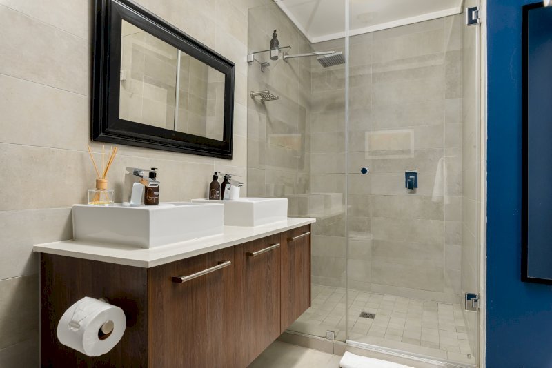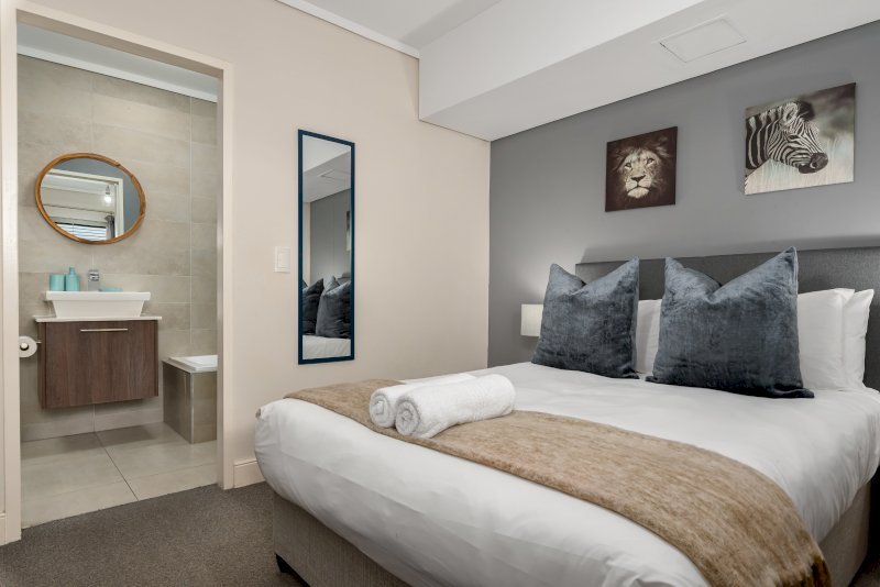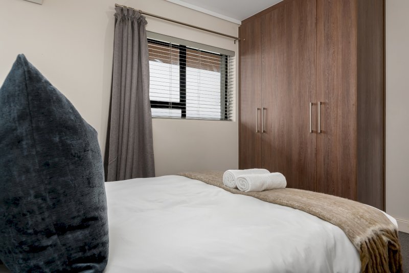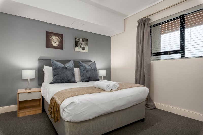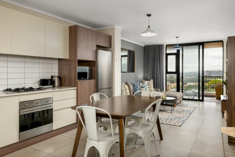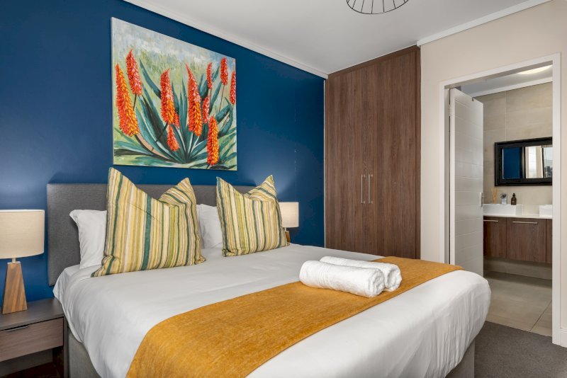 Light and simplistic, with modern finishes, this two-bedroom unit boasts a fully equipped kitchen leading onto a living-cum-dining-area. The dining area is comfortable, seating four and it opens out onto a balcony with staggering views of the Intaka wetlands. Both  Bedrooms offer plush Queen beds with en-suite bathrooms while 24-hour security and secure parking allow for added peace of mind.