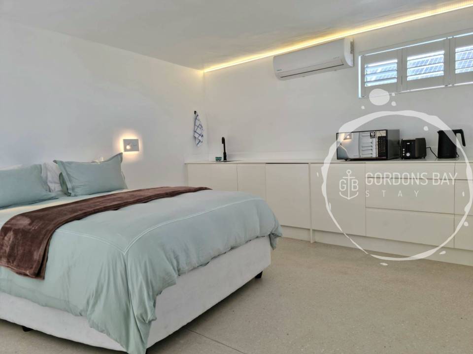 Kaya Moya Cottage is ideal for a couple getaway or single business traveler! Enjoy cool afternoons in the spacious living area or sunny days on the veranda. Kaya Moya Cottage offers views of Gordon’s Bay old village all the way across the bay to Table Mountain. Take a 5 min stroll into town and enjoy a variety of shops, restaurants, the beach and the buzz of our seaside village.