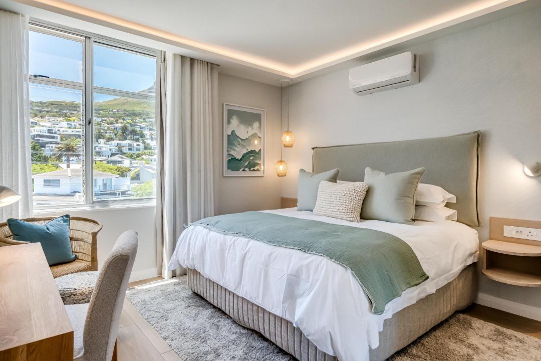 Kyanos is a modern, stylish (renovated in November 2024) apartment nestled in the heart of Camps Bay, just across the road from Camps Bay beach and from the Promenade with shops and restaurants. With breathtaking sea and mountain views, this stunning 2 bedroom apartment offers an inviting space, blending sleek design with beach-inspired aesthetics. The main bedroom features a king-sized bed, air conditioning, and access to the balcony with sea views, while the second bedroom offers king-sized bed and views of the Twelve Apostles. Both bedrooms come with modern en-suite bathrooms. The open-plan living area, thoughtfully designed, boasts sea views, air conditioning, and access to the balcony, perfect for unwinding and taking in the ocean breeze. A fully-equipped kitchen with a breakfast bar overlooks the mountains, and the apartment includes convenient amenities such as a Nespresso machine, washer, and dishwasher. Steps from the beach, Camps Bay Promenade and some of Cape Town’s best attractions, Kyanos is the perfect place to spend time in Cape Town.