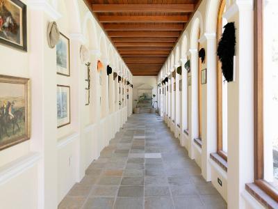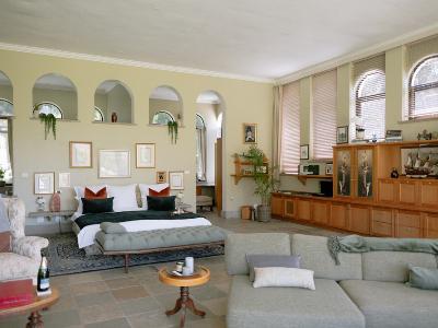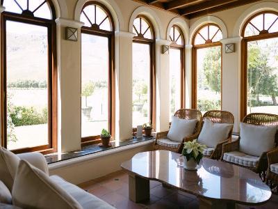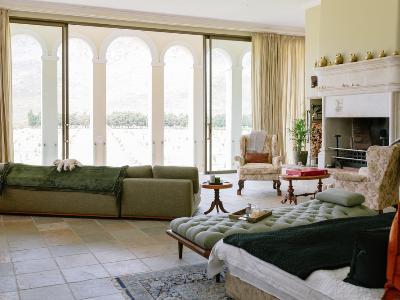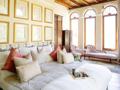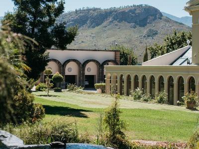 As you approach La Roche Estate, your journey through the scenic Franschhoek valley culminates in a breathtaking sight: the Manor House, a grand and stately structure nestled against the mountain backdrop. With its impressive arches and bold architecture, this magnificent house welcomes you into a world of refined luxury and serene tranquility.