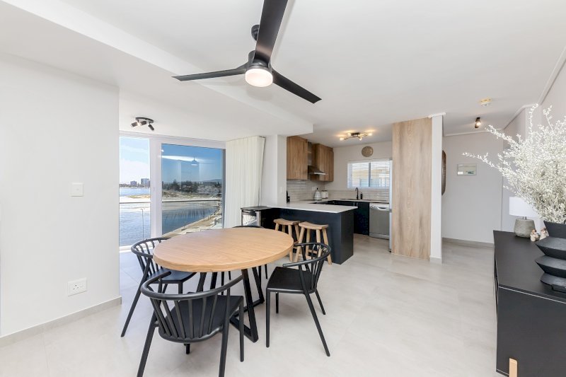 A refined two-bedroom apartment set along the shores of Lagoon Beach in Milnerton, offering uninterrupted ocean and lagoon views. Ideally positioned between the city centre and the beaches of Bloubergstrand, this residence is well suited to couples, business travellers, or small families seeking a serene seaside retreat with convenient access to Cape Town’s leading attractions.