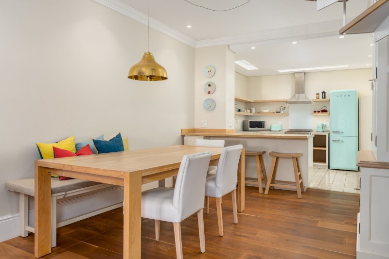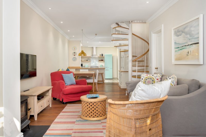 A refined three-bedroom townhouse set within a tranquil pocket of Green Point, surrounded by greenery and mature trees. Designed for families or small groups, this two-storey residence offers elegant interiors, en-suite privacy, and seamless indoor–outdoor living — all within walking distance of the Cape Town Stadium, Green Point Park, the V&A Waterfront, and the Sea Point Promenade.
