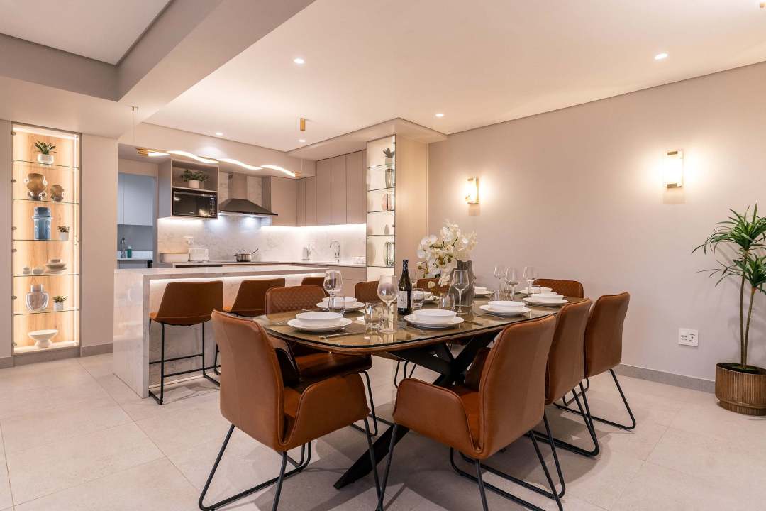 Just below Unit 1, this unit offers a similarly luxurious experience in a 3-bedroom, 3.5-bathroom setup. This apartment features a serene patio, ocean views, and an elegant open-plan living space. The spacious lounge includes a large-screen TV and opens to a modern kitchen with premium appliances and a separate scullery. An indoor patio space with sliding doors brings the outdoors in, offering yet another vantage point to soak in the views.