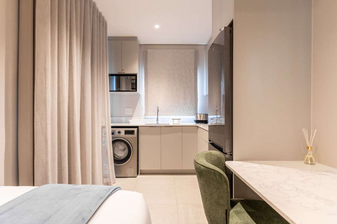 Private kitchenette with washing machine, fridge and microwave
