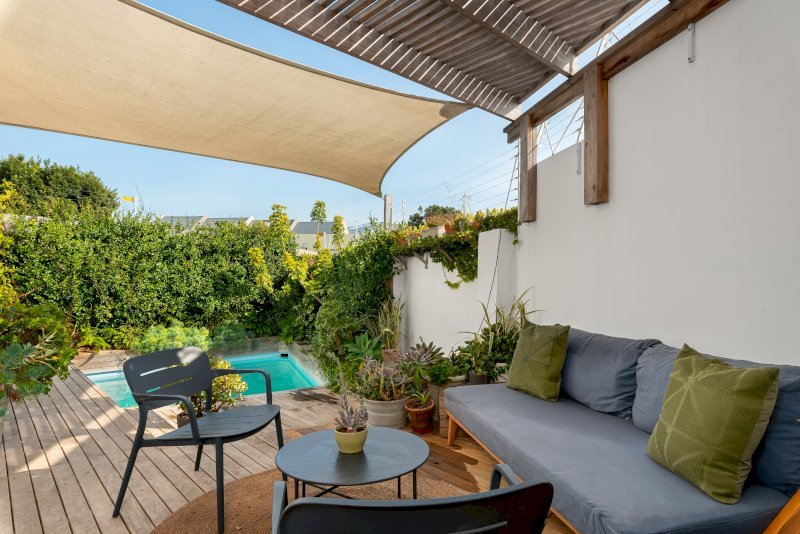 Outdoor living is a highlight of the property. The garden offers a tranquil escape from the city, while the pool and braai area provide the perfect setting for enjoying Cape Town’s sunny climate.