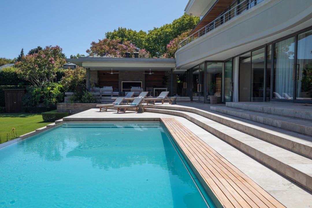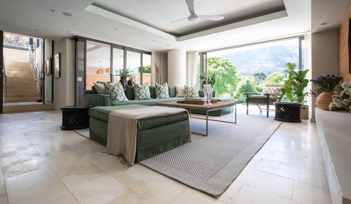 This exceptional nine-bedroom luxury villa is discreetly tucked away in the leafy suburb of Bishopscourt, one of Cape Town’s most prestigious residential enclaves. The property boasts uninterrupted, iconic views of Table Mountain, widely regarded as among the best in the city.