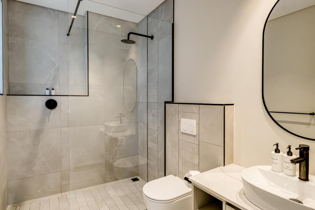 Marlo Breeze is a modern holiday apartment located in the vibrant suburb of Sea Point. The apartment features three king bedrooms, each with a ceiling fan and an ensuite with a shower and single vanity. The main bedroom offers sea views and a desk, while the other two bedrooms enjoy mountain views and open onto a shared balcony with seating for two. The kitchen includes an electric hob, dishwasher, and a washer/dryer combo for convenience. The open-plan living and dining areas provide seating for four, a TV, air conditioning, and access to a balcony with sea views. The outdoor space includes a dining area for six, perfect for al fresco meals, and a communal rooftop pool as well as a communal gym and entertainment area. Located walking distance to the Sea Point Promenade and a 10-minute drive from the V&A Waterfront, Marlo Breeze offers an ideal base for exploring the area. Due to body corporate requirements, please give the exact number of guests when booking to avoid any complications.
