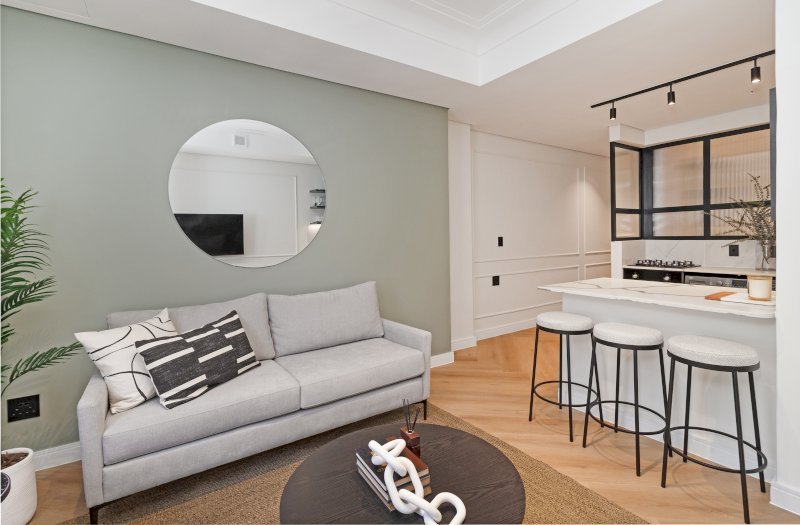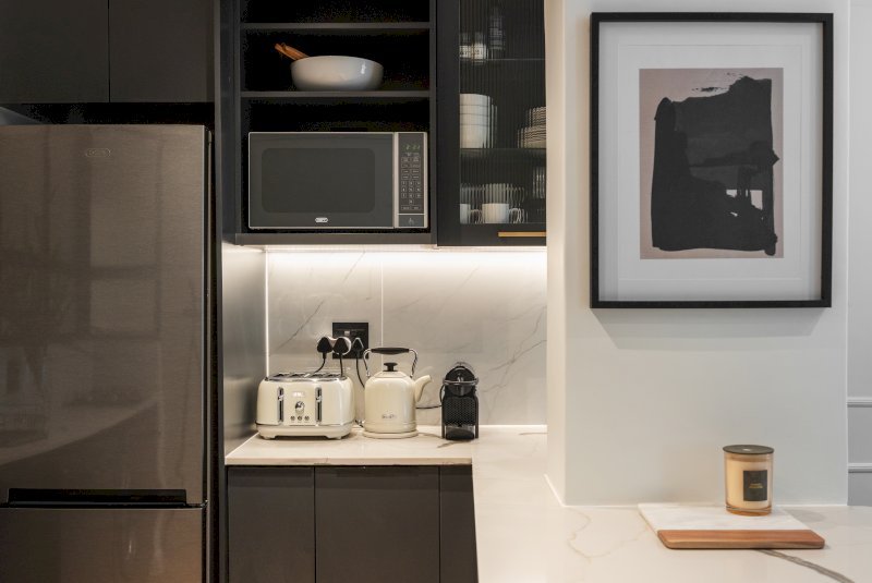 This beautifully designed apartment offers a bright and airy open-plan living area that combines sophistication with comfort. The modern kitchen is perfect for cooking up a storm, with plenty of counter space, quality appliances, a gas stovetop, oven, fridge, dishwasher, and a Nespresso machine so you can start your mornings with barista-quality coffee. The kitchen looks onto the lounge, creating a social, connected atmosphere that’s perfect for relaxing or entertaining while you cook.