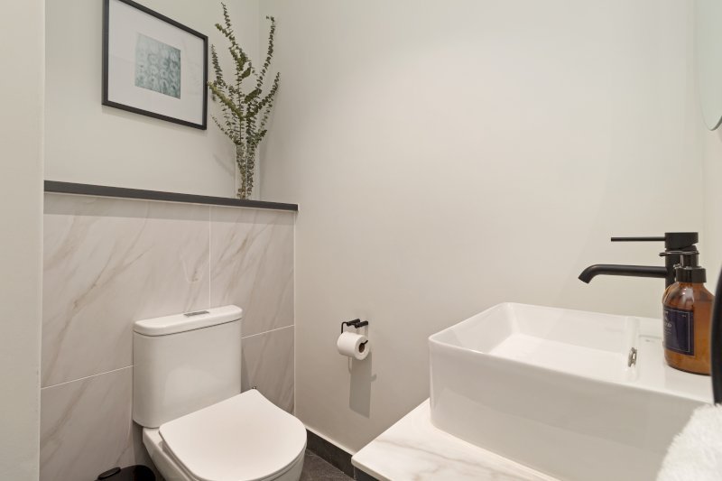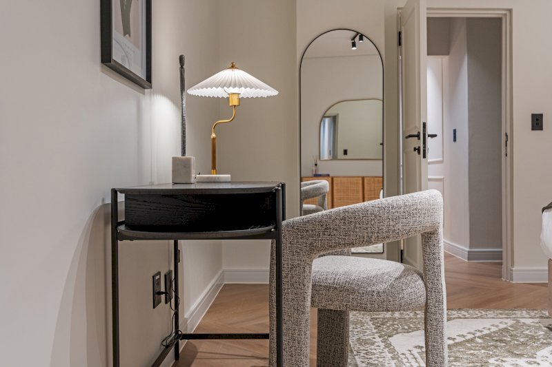 The lounge is elegantly styled with plush, comfortable furnishings, creating the perfect space to unwind. Soft textures and warm tones make it inviting, while high-speed WiFi and a Smart TV with Netflix ensure you’re well connected and entertained. It’s an ideal setting for both relaxation and leisure, whether you’re enjoying a quiet evening in or a laid-back movie night.