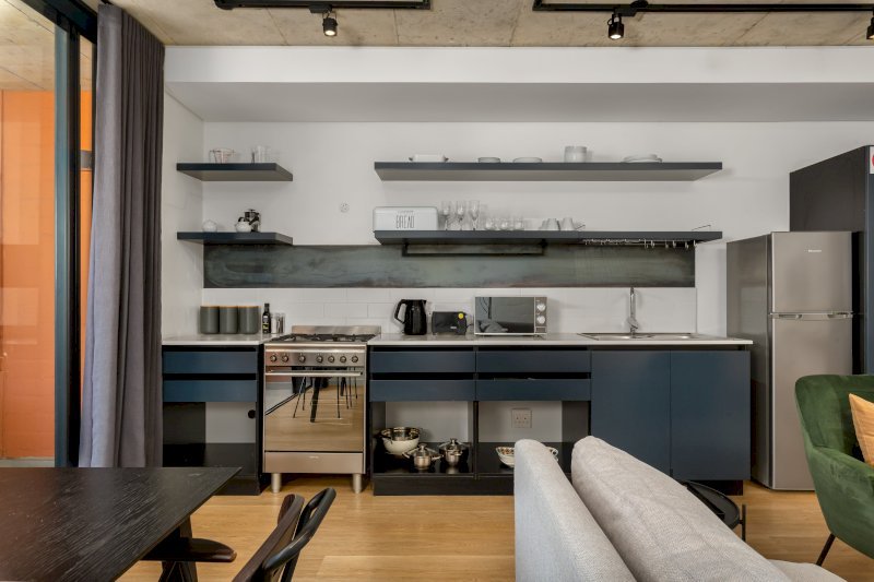 This modern apartment blends contemporary design with the vibrant atmosphere of Bo-Kaap. The interiors feature sleek finishes, stylish furnishings, and a comfortable layout designed to make guests feel at home.