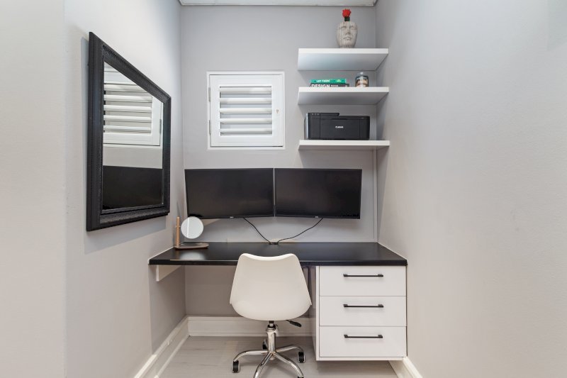 The bedroom makes for the best base to get a restful nights sleep with a cosy, plush king bed. The bedroom also offers a Smart Tv for a more cosy catch up of your favourite Netflix shows and a dedicated work space with two additional screens that make working remotely a breeze.