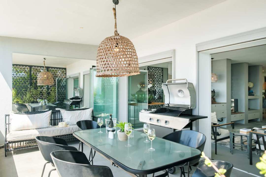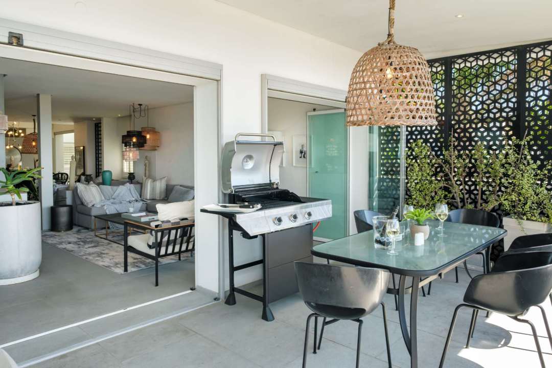 Outdoors, the patio provides a relaxed setting with dining for five, seating for three, a gas BBQ, and spectacular sea views – the perfect spot for alfresco meals or sunset drinks.