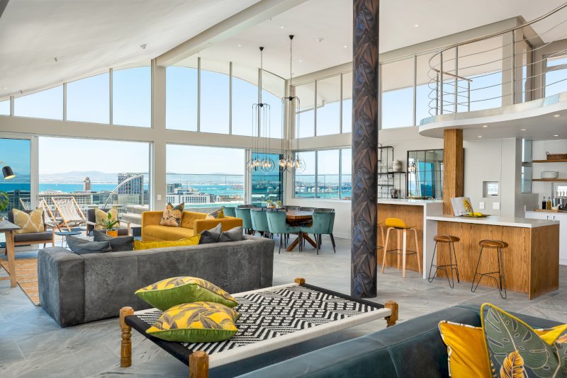 The lounge features a family lounge and a separate TV area, a smart TV with Cable TV & sports channels and of course a gorgeous view over Cape Town’s waterfront and harbour.