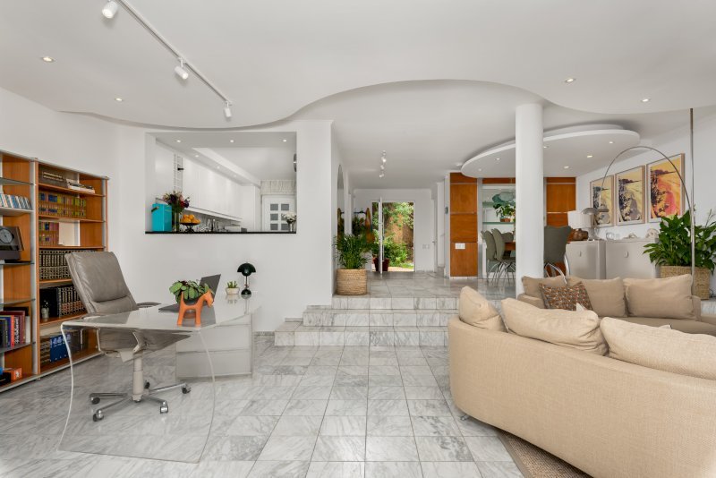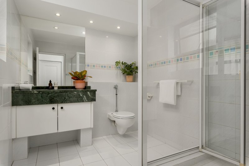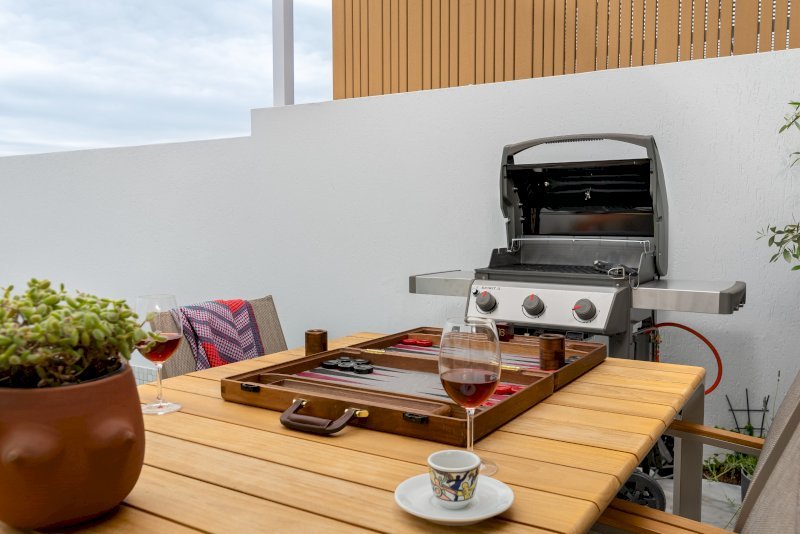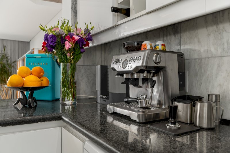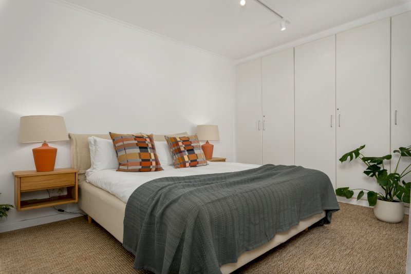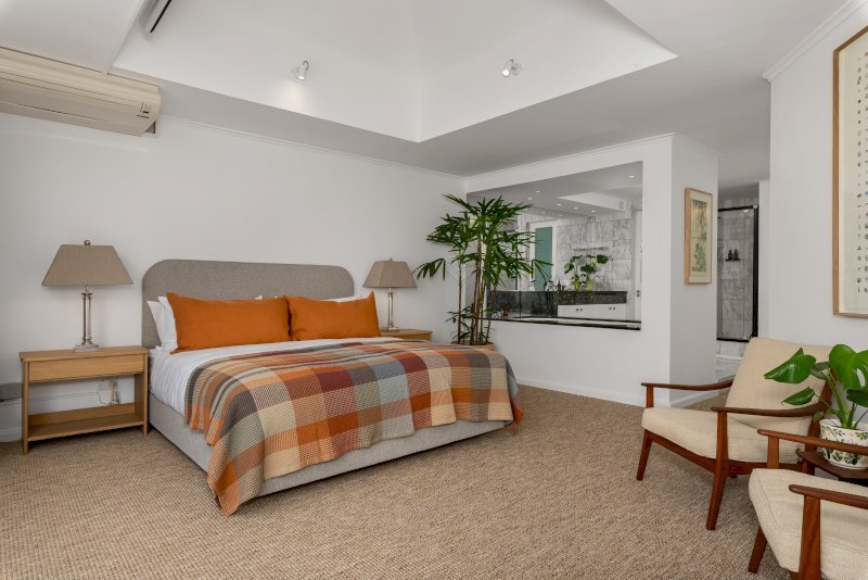 The interiors are modern and thoughtfully curated, blending comfort with clean design. An open-plan layout allows for effortless living, whether enjoying a quiet morning coffee at the kitchen island or an evening meal at the dining table. The atmosphere is relaxed yet refined — a private escape within easy reach of the vibrancy of the city.