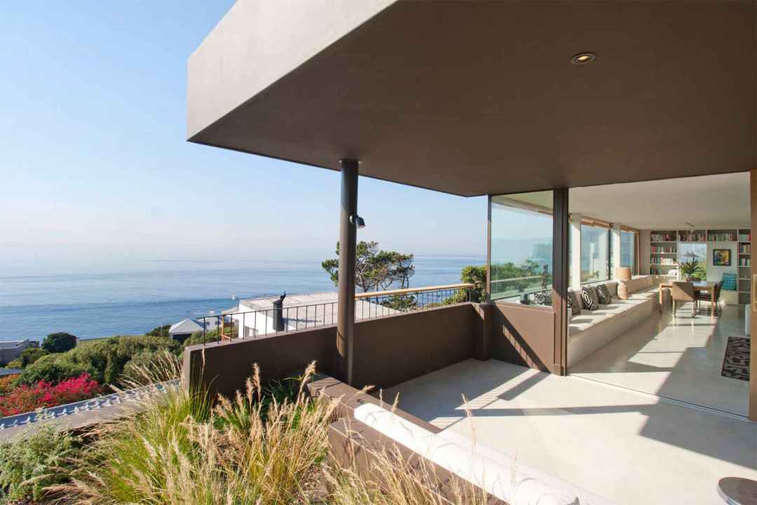 Are you in search of a breathtaking mountainside vacation home with panoramic ocean views? Look no further than Rising Sun, a newly constructed contemporary residence nestled against the majestic Murdock Valley mountains in Simonstown. This modern, multi-level home offers uninterrupted views over False Bay and the Kogelberg mountain range, making it the ideal retreat for those seeking luxury and tranquility.
