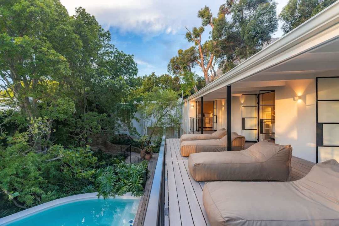 Welcome to River42, a newly renovated (2024), luxurious 4-bedroom retreat where modern sophistication meets natural tranquility. Tucked away at the edge of a lush, tree-filled glen, this rare gem offers a private oasis in the heart of Camps Bay.