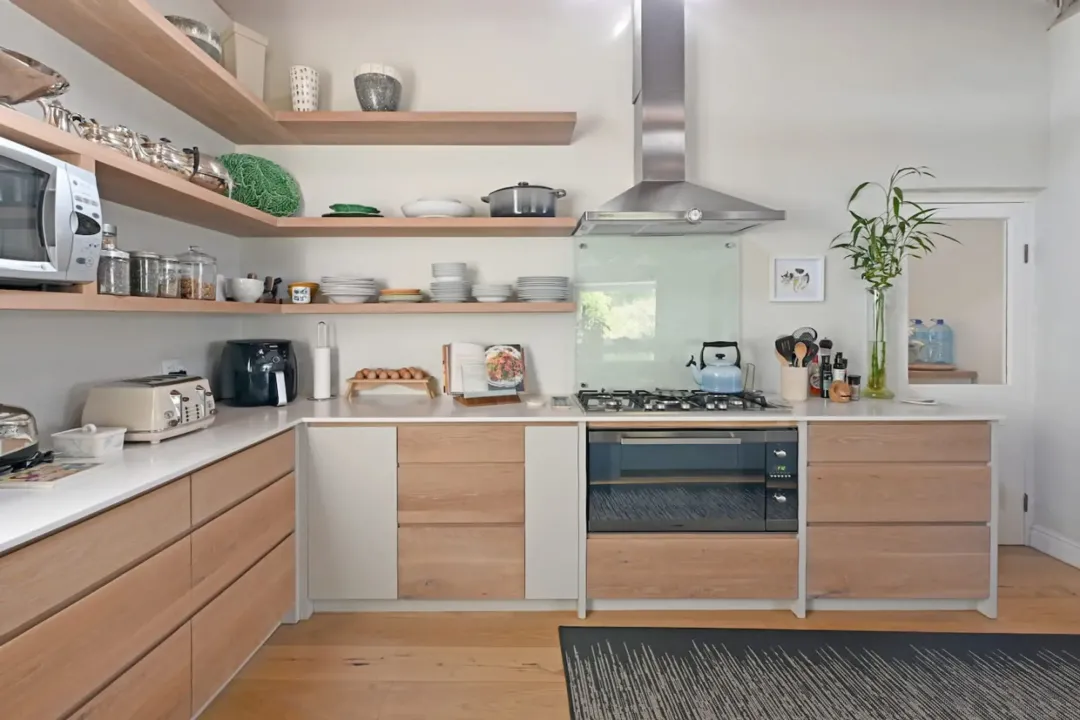 The fully equipped kitchen is ideal for family meals or entertaining, featuring modern appliances and a spacious scullery to keep everything effortlessly organised.