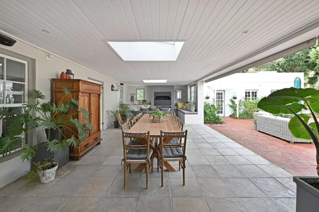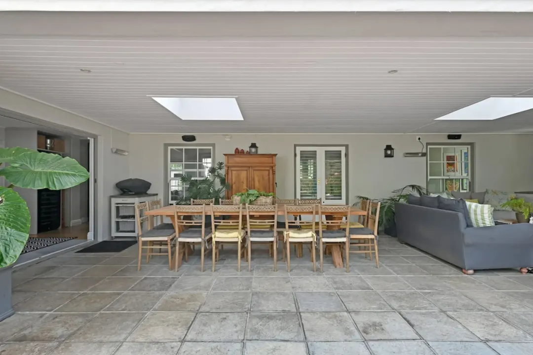 A sparkling swimming pool, expansive pool deck, and outdoor BBQ area invite long, sun-filled days spent soaking up the South African climate. Covered patios and outdoor entertainment areas provide seamless spaces for alfresco dining, relaxed gatherings, and evening braais under the stars.
