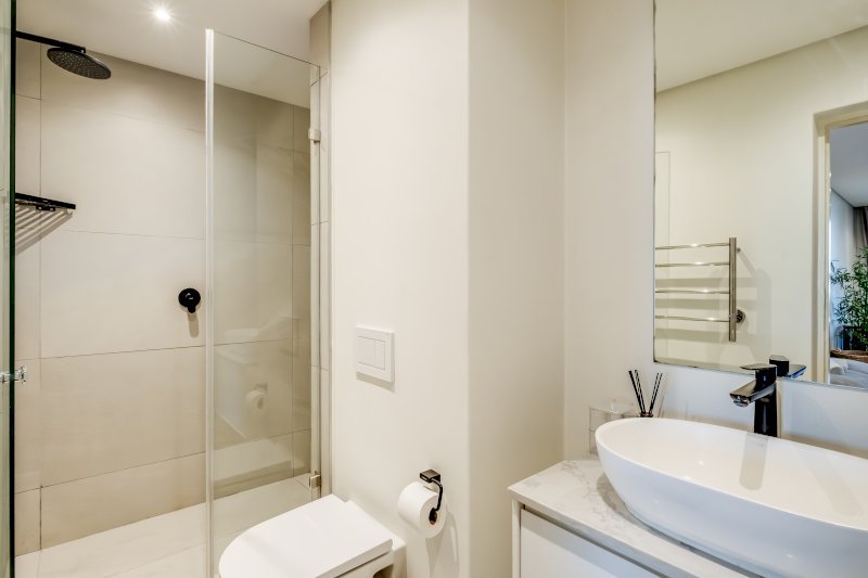 The two bedrooms are set on opposite sides of the apartment for maximum privacy, perfect for colleagues, couples, or families.