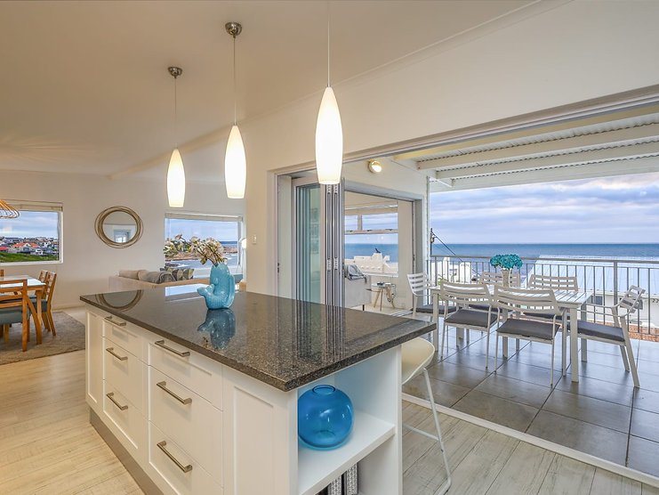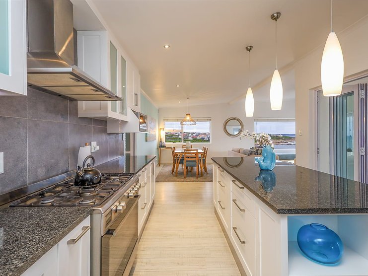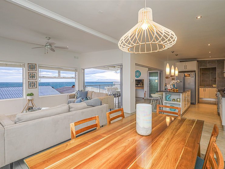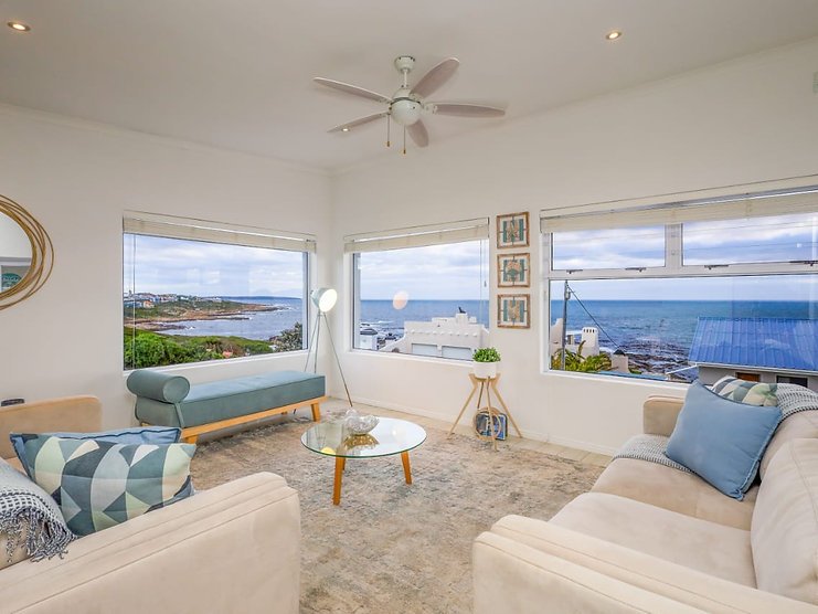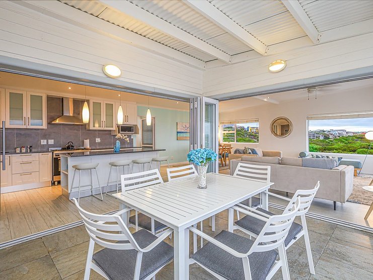 Welcome to ‘Seegeluk’, a stunning holiday rental with breathtaking sea views from every window. This modern double-storey home has the most amazing ocean feel! From the spacious balcony, with a built-in fireplace, you can often spot whales swimming along the horizon. ‘Seegeluk’ is located within walking distance to the beach, making it the perfect place for a summer holiday. The open-plan living space and stylish finishes create a bright and airy atmosphere. The homeowners have installed an inverter to provide guests with a seamless energy supply during load-shedding. Gaansbaai is well known for shark cage diving, or you’re looking for a more low-key adventure, explore the nearby hiking trails and take in the stunning coastal landscape. This home is the perfect escape for a holiday to remember.