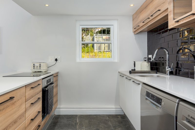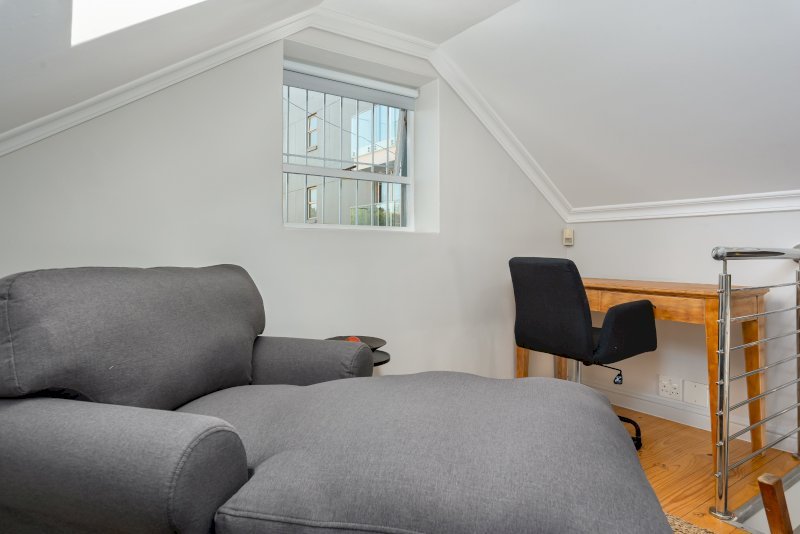 This vibrant 2 story townhouse/cottage seems to emulate the eclectic soul of Cape Town. A lot of thought and consideration has gone into making the home the perfect family escape. Modern appliances and finishes with tasteful use of colour throughout.The open plan lounge, kitchen and dining area features designer furnishing and modern appliances throughout. The lounge opens onto a covered balcony with outdoor furniture and a Braai/BBQ. Adjacent to the lounge is a loft-style office space or work area with desk space.