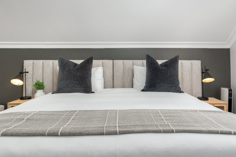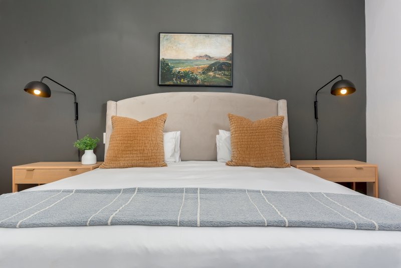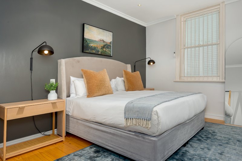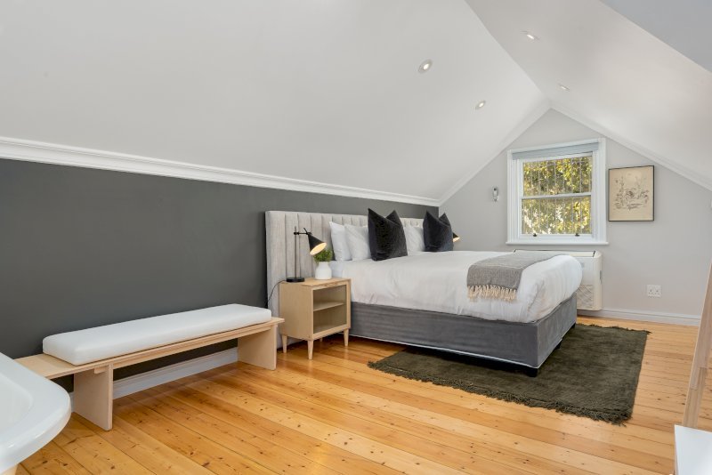 The spacious upstairs loft-style bedroom is a dream-space with whitewashed tilted ceilings, king size bed and open plan bathroom with classic bathtub and separate walk in shower. The second bedroom has a king size bed, aircon and en suite bathroom with walk-in shower. The third bedroom has 2 x single beds, aircon and a separate bathroom with walk-in shower.