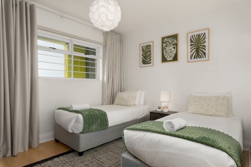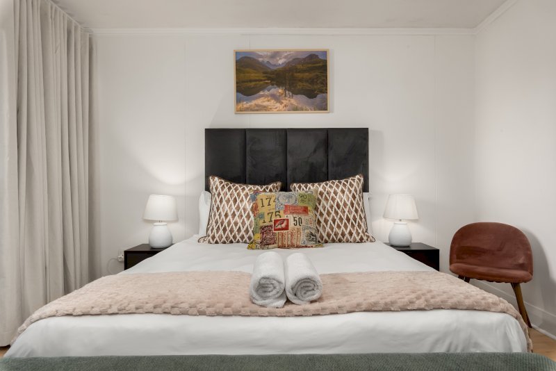Main Bedroom: The primary suite features a queen-sized bed, ample built-in cupboard space, and a private en-suite bathroom with a spacious walk-in shower.